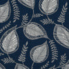 | Détails décoratifs | Feuilles blanches et grises sur un fond bleu. |