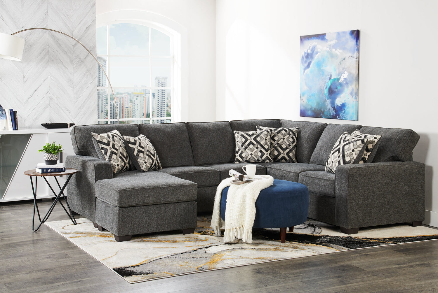 Pouf personnalisable The Curve de Sofa Lab de 31 po fabriqué au Canada en tissu d’apparence lin - bleu Pax Navy