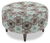 | Détails décoratifs | Un capitonnage à un seul bouton au centre du dessus du pouf rond confère une apparence moelleuse à ce meuble. |