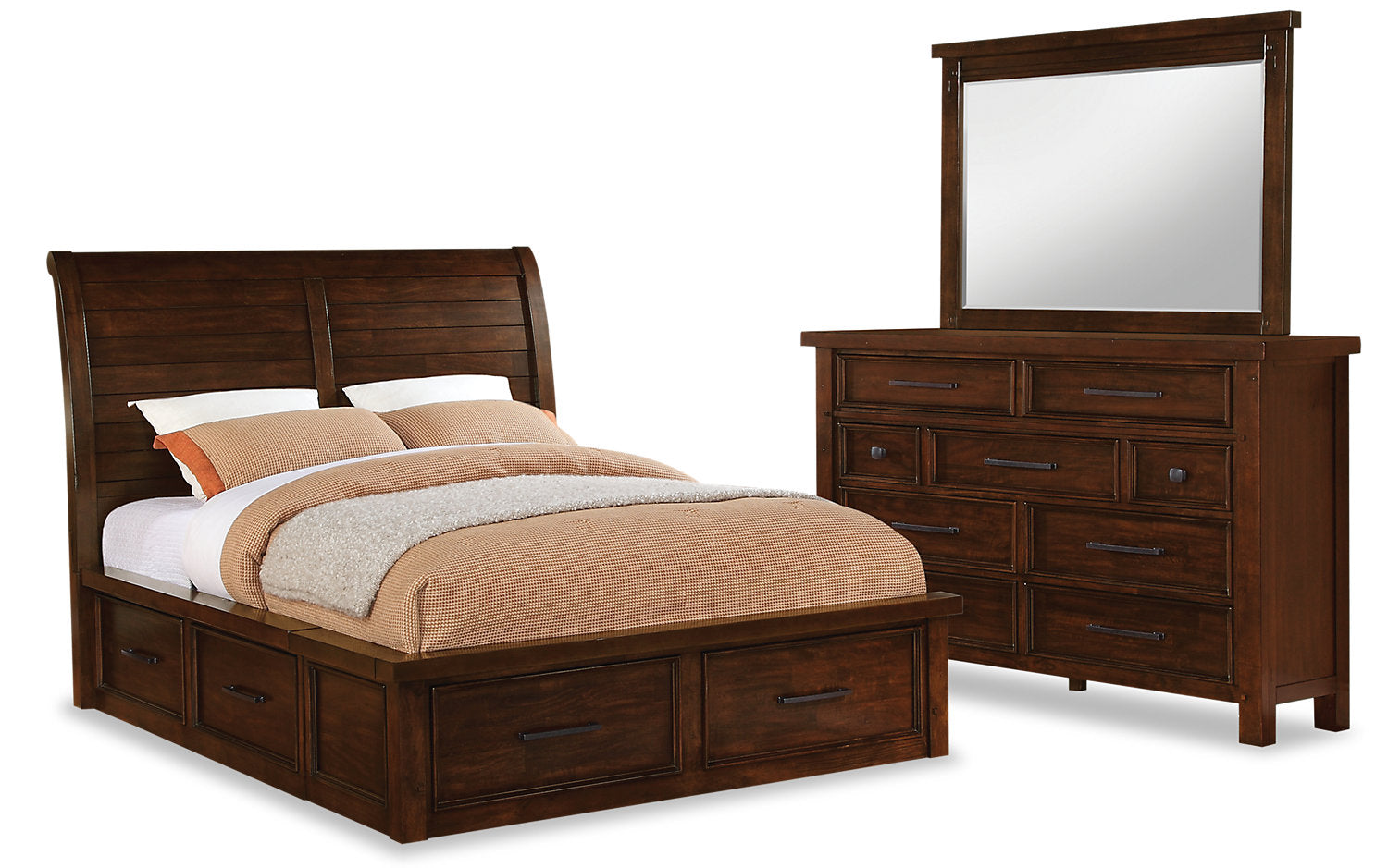 Lit plateforme de rangement Sonoma avec tête de lit et cadre de lit, brun manguier - format grand lit