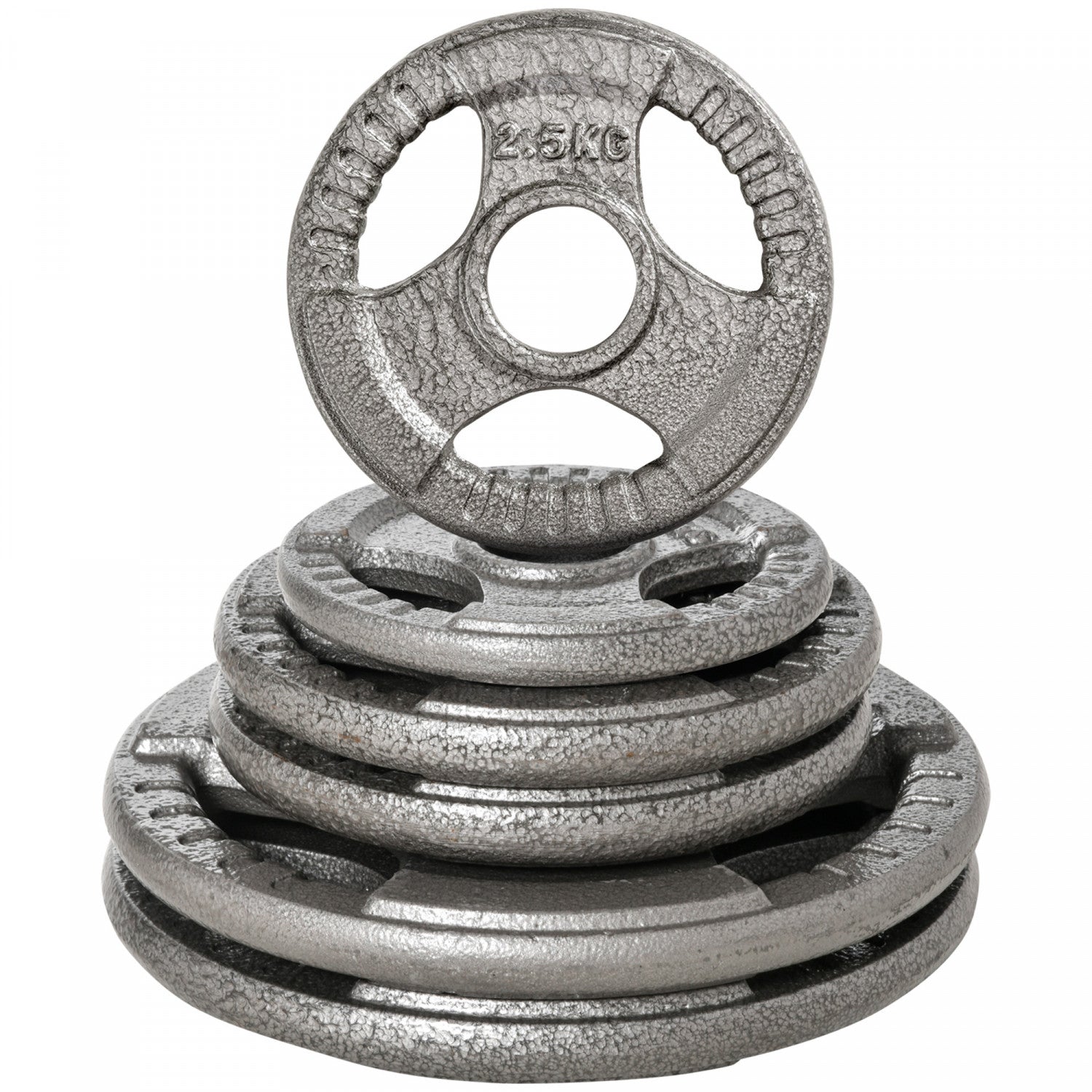 | Key Features | Convient a la fois aux debutants et aux niveaux avances de fitness a utiliser dans votre maison, salle de gym, garage ou espace d'entrainement ; - Les plaques de poids en acier massif avec finition emaillee ; - Chaque plaque de poids etiquetee en KG pour une reconnaissance facile ; - Construit avec une conception de poignee a 3 grands trous pour une prise en main facile et sure; - Peut etre utilise comme exercices de musculation avec ou sans barre ; -Poids total de 77 lb, comprend deux plaques de poids de 22 lb, deux de 11 lb et deux de 6 lb; - Un trou central de Փ2.25" s'adapte a toutes les barres d'halteres d'un diametre de Փ2" ou moins ; |