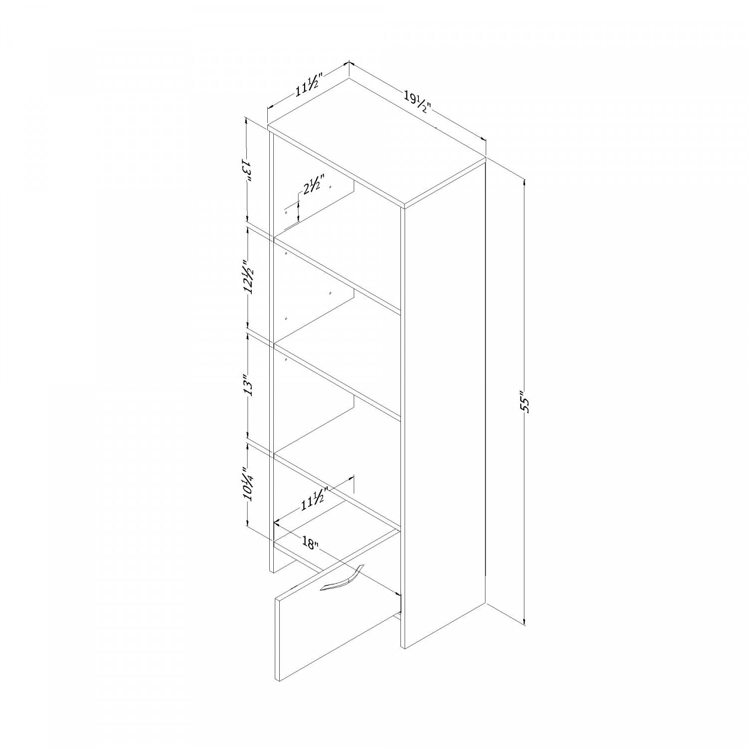 Largeur : 19,5 po (49,5 cm) Hauteur : 55 po (139,7 cm) Profondeur : 11,5 po (29,2 cm)