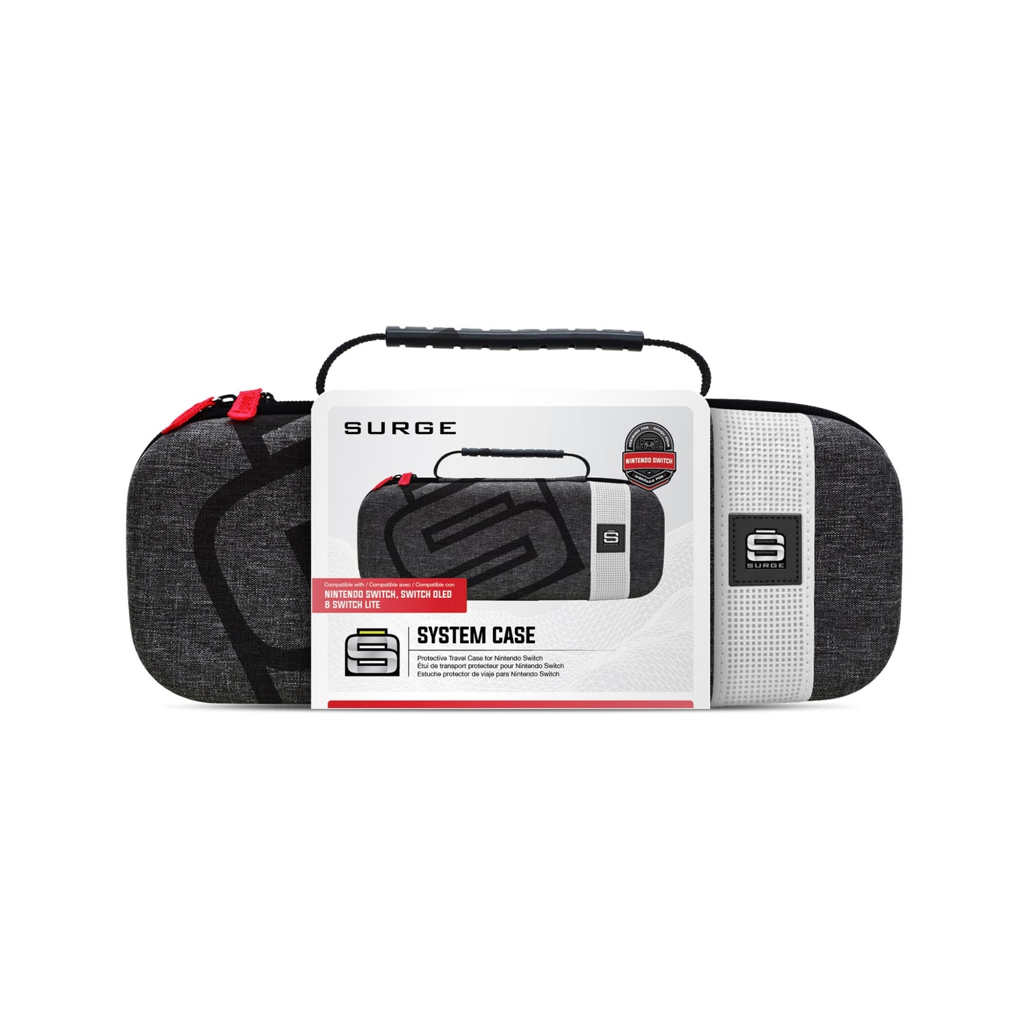Gardez votre console Nintendo Switch protégée et prête à l’aide de l’étui Surge. Doté d’espace pour votre console, vos jeux et vos accessoires et d’un trou spécial pour l’adaptateur CA, l’étui garde tout votre ensemble organisé et à un seul endroit. La poche en filet est assez profonde pour contenir les manettes Joy-ConMC ou d’autres petits accessoires. Le protecteur d’écran rembourré ne fait pas que protéger votre écran, il peut également contenir quatre cartouches de jeux. L’extérieur semi-rigide offre de la protection et une apparence tendance lorsque vous apportez votre ensemble avec vous. Idéal pour voyager et pour être prêt à partir à tout moment, il protège votre ensemble de console Switch dans une taille compacte.