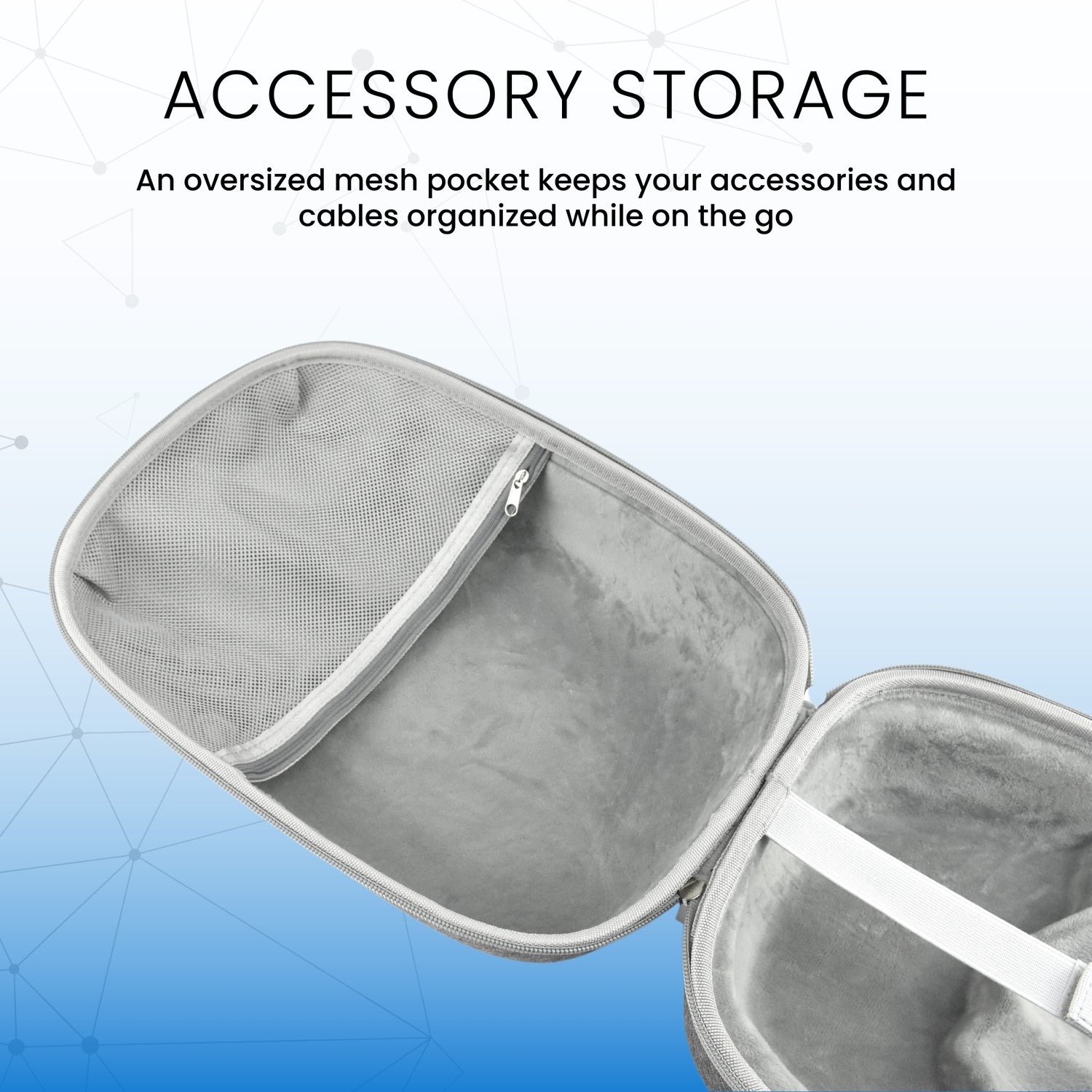 Organisez et protégez votre ensemble de PlayStation VR2 dans notre étui pour casque de réalité virtuelle PS VR2. Notre étui léger vous permet d’apporter votre casque et vos manettes avec vous, avec une très grande pochette en filet pour les accessoires et les câbles supplémentaires. Une coquille extérieure rigide et un intérieur doux au toucher protègent vos appareils des égratignures et des chutes, tandis qu’une courroie élastique renforcée garde votre casque et vos manettes en place lorsque vous vous déplacez.