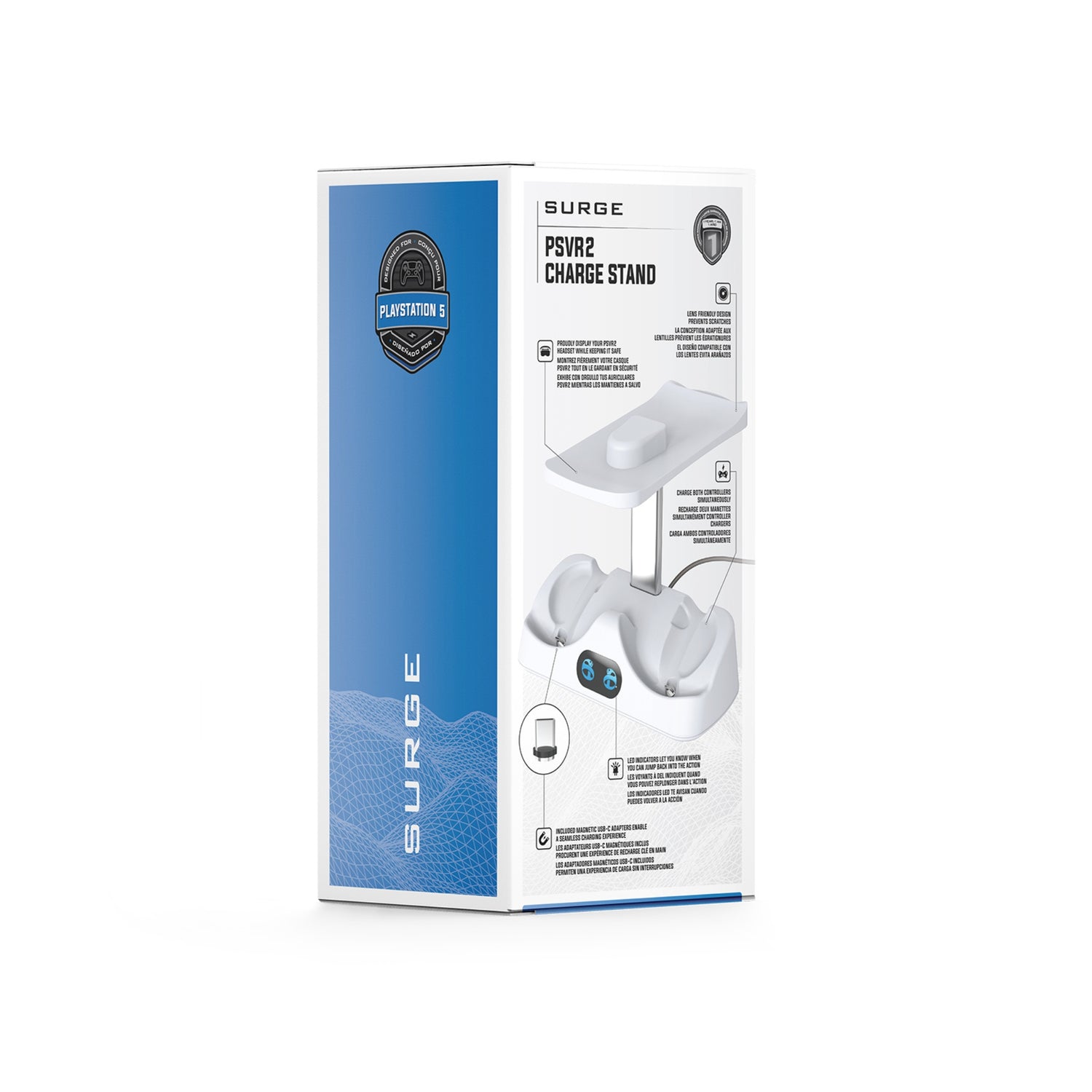Créez une base principale pour vos aventures de réalité virtuelle. Notre station de recharge pour PlayStation VR2 se branche directement à votre console et sert à ranger vos manettes PS VR2 SenseMC ainsi que votre casque PS VR2 dans une conception à économie d’espace. Deux chargeurs de manette font en sorte que votre ensemble soit prêt lorsque vous l’êtes, avec des voyants à DEL pratiques qui indiquent le niveau de charge pour vous permettre de savoir quand vous pouvez replonger dans le jeu. Des adaptateurs USB-C magnétiques permettent une expérience de chargement simple sans devoir brancher des câbles. Un grand plateau pour casque tient sécuritairement votre casque PS VR2 en place sans toucher aux objectifs.