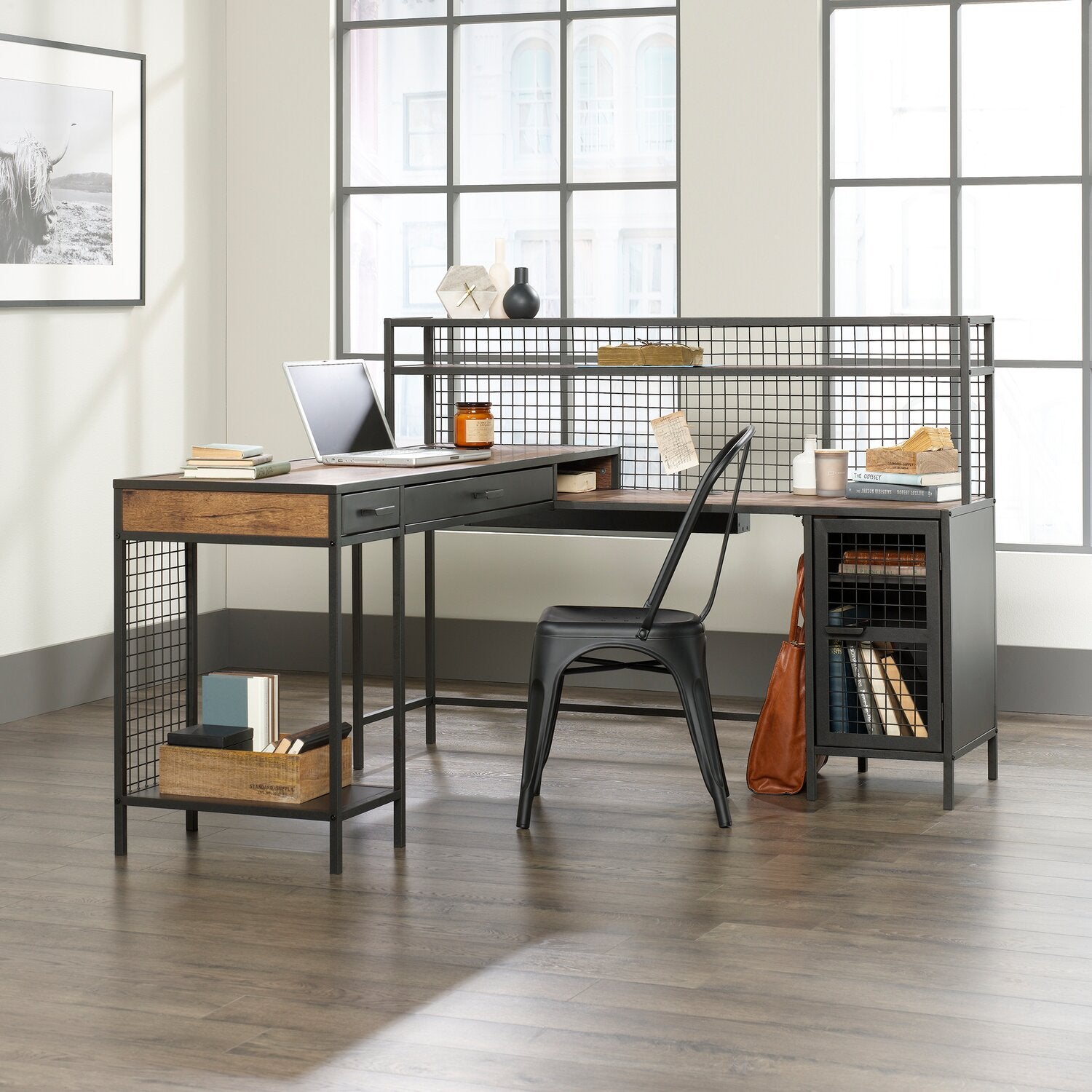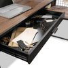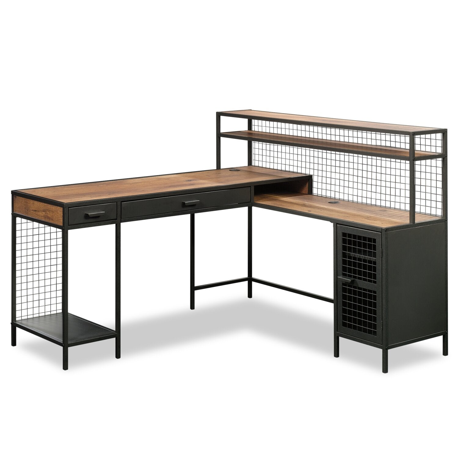 | Options de rangement | Deux tiroirs, une armoire avec une tablette réglable, une tablette ouverte à la base du bureau et une crédence. |