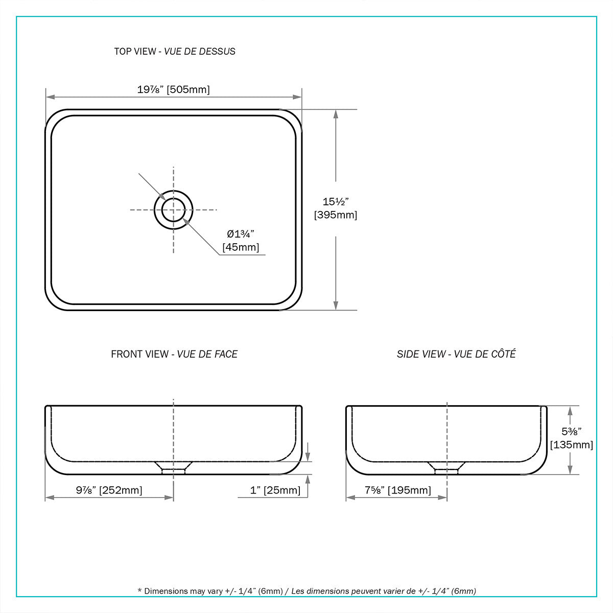 Largeur : 15,74 po (40,0 cm) Hauteur : 5,31 po (13,5 cm) Profondeur : 19,68 po (50,0 cm)