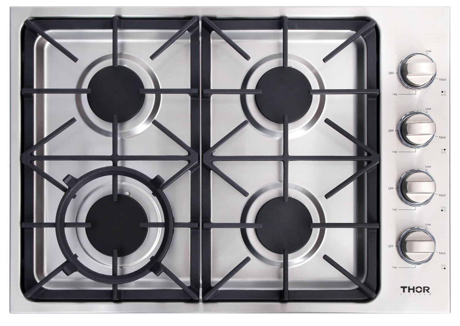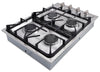 Boutons illuminés : Grilles continues : Anneau de wok inclus : Allumage électrique automatique : Construction en acier inoxydable : Option pour gaz propane liquide : |