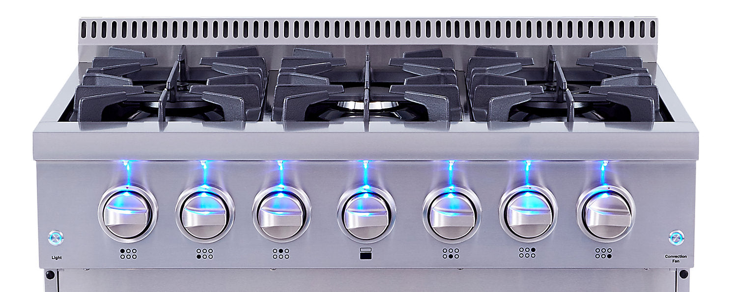 Convection commerciale : Grilles continues en fonte : Cuvettes de propreté en porcelaine : Rallumage automatique : Panneau de commandes avec lumières à DEL : Commandes en acier inoxydable : |