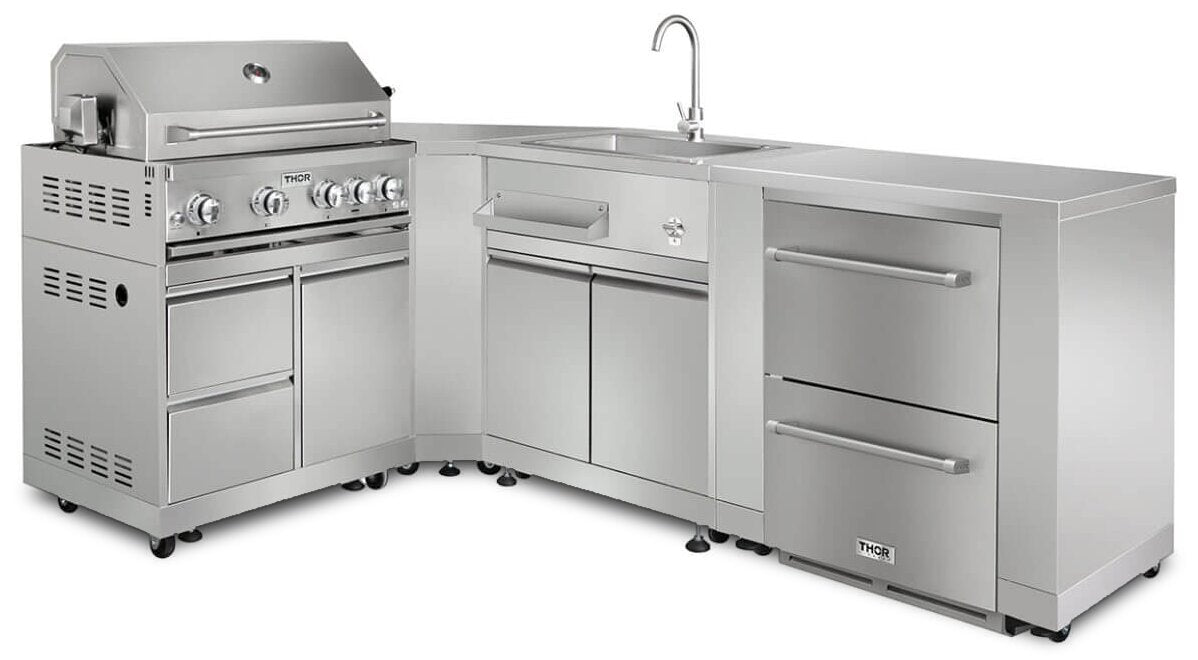 Complétez l’ensemble : Module en coin : Espace de comptoir : Très grande armoire de rangement : Facile à déplacer : Acier inoxydable 304 : Poignées encastrées : |