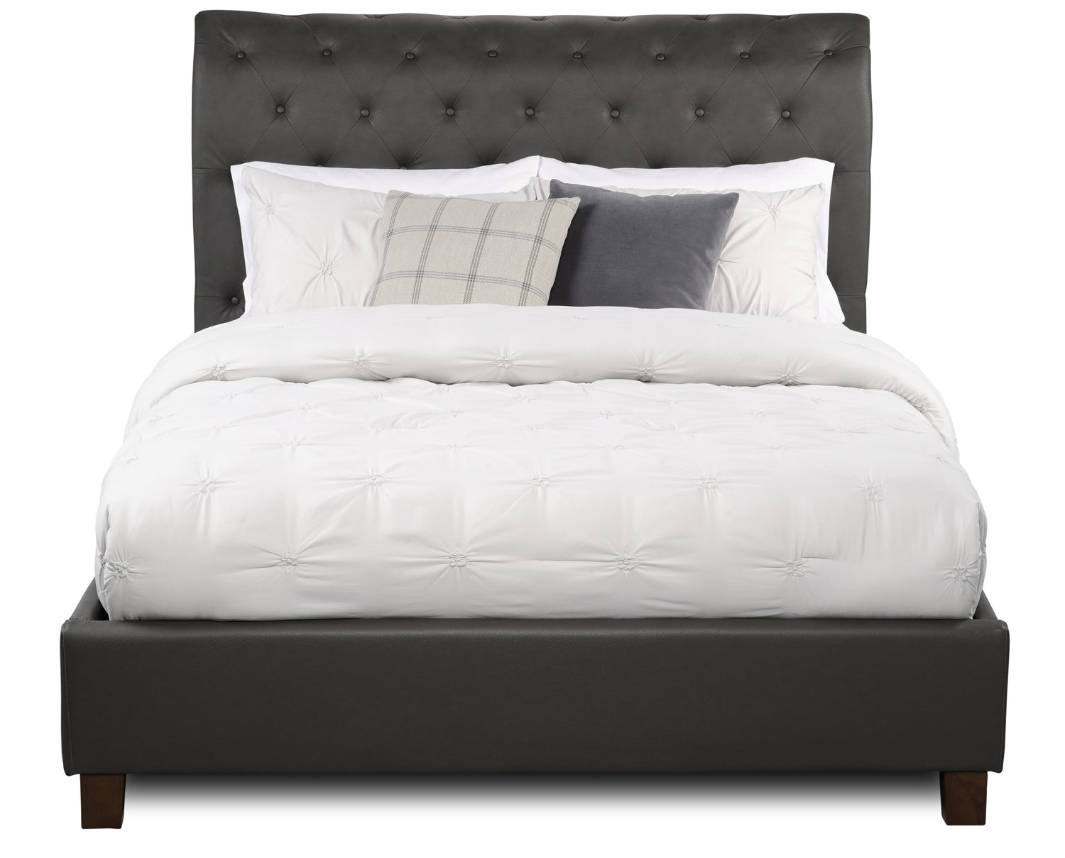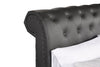 | Détails décoratifs | Le capitonnage à boutons en forme de diamant et les lignes de clous décoratifs en métal brillant décorent la tête de lit. |