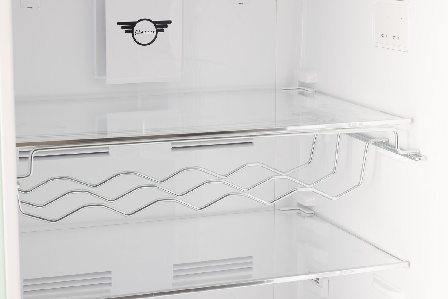 Réfrigérateur de style rétro à congélateur supérieur : Tablettes réglables en verre : Refroidissement sans givre : Filtres UltraFresh : Appareil homologué ENERGY STARMD : Support à vin : |