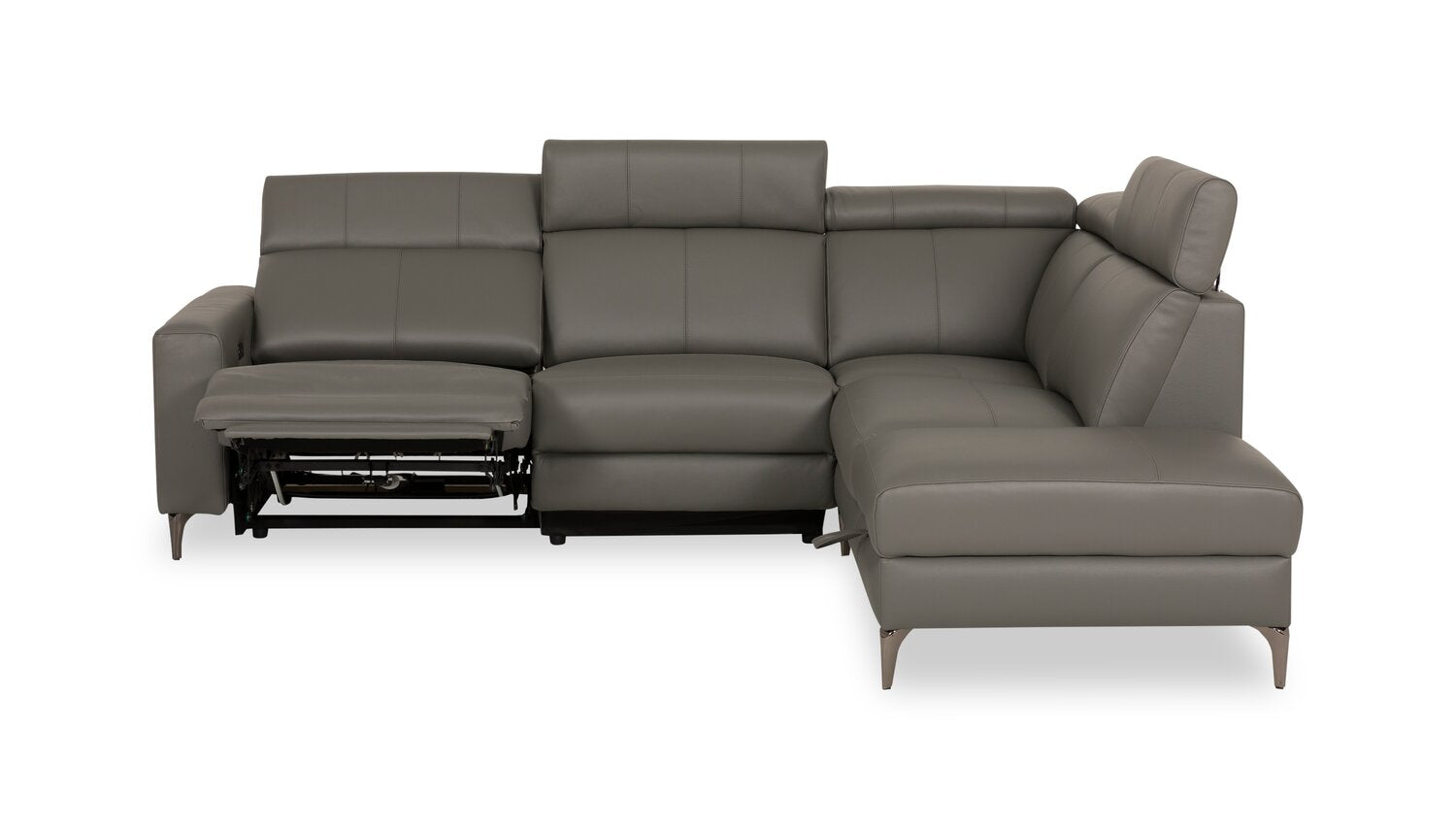 | Détails décoratifs | Les pattes en métal soutiennent ce meuble d’un style discret et elles s'agencent parfaitement au revêtement en cuir véritable gris lisse. |