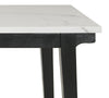 | Détails décoratifs | Les pattes noires créent une allure géométrique sous le dessus de table blanc et gris. |