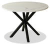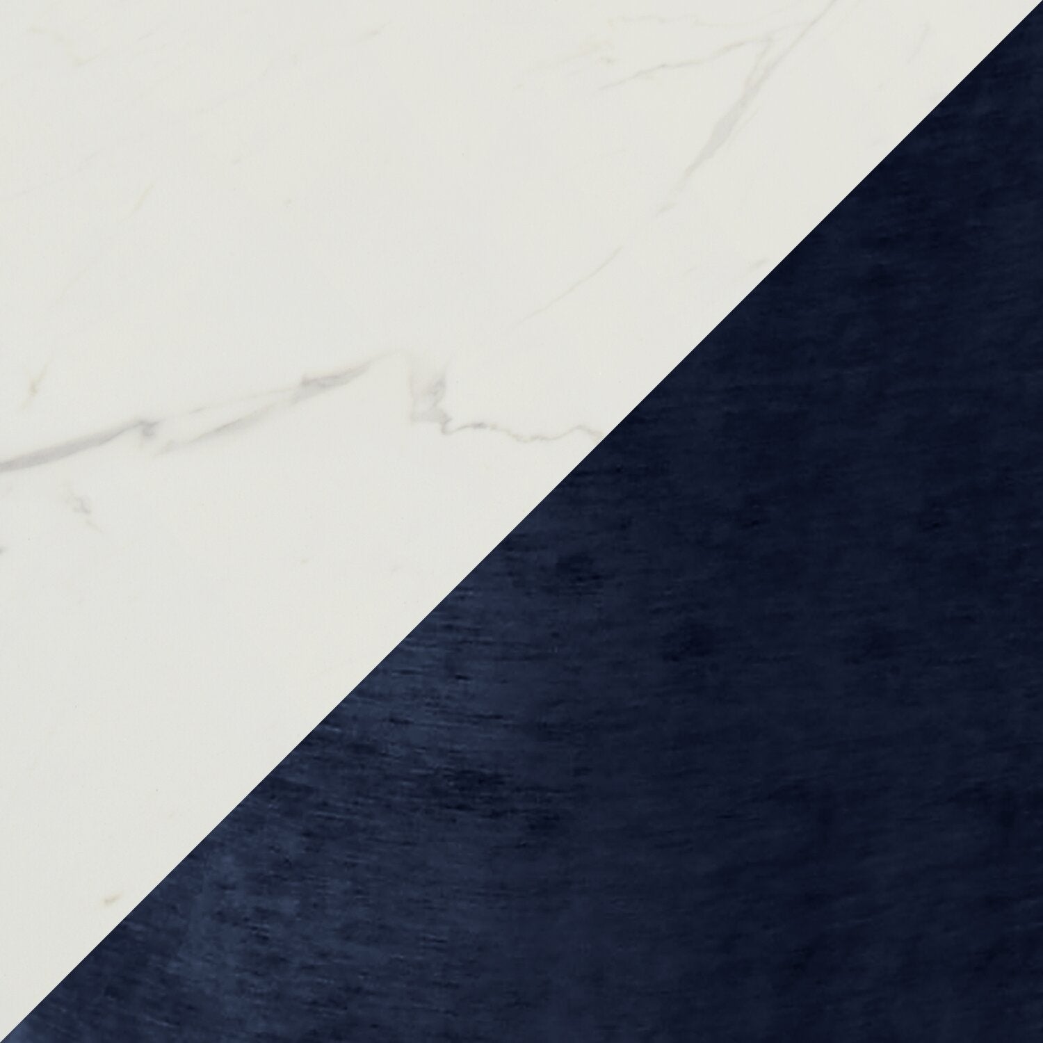 | Détails décoratifs | Les pattes noires créent une allure géométrique sous le dessus de table blanc et gris. |