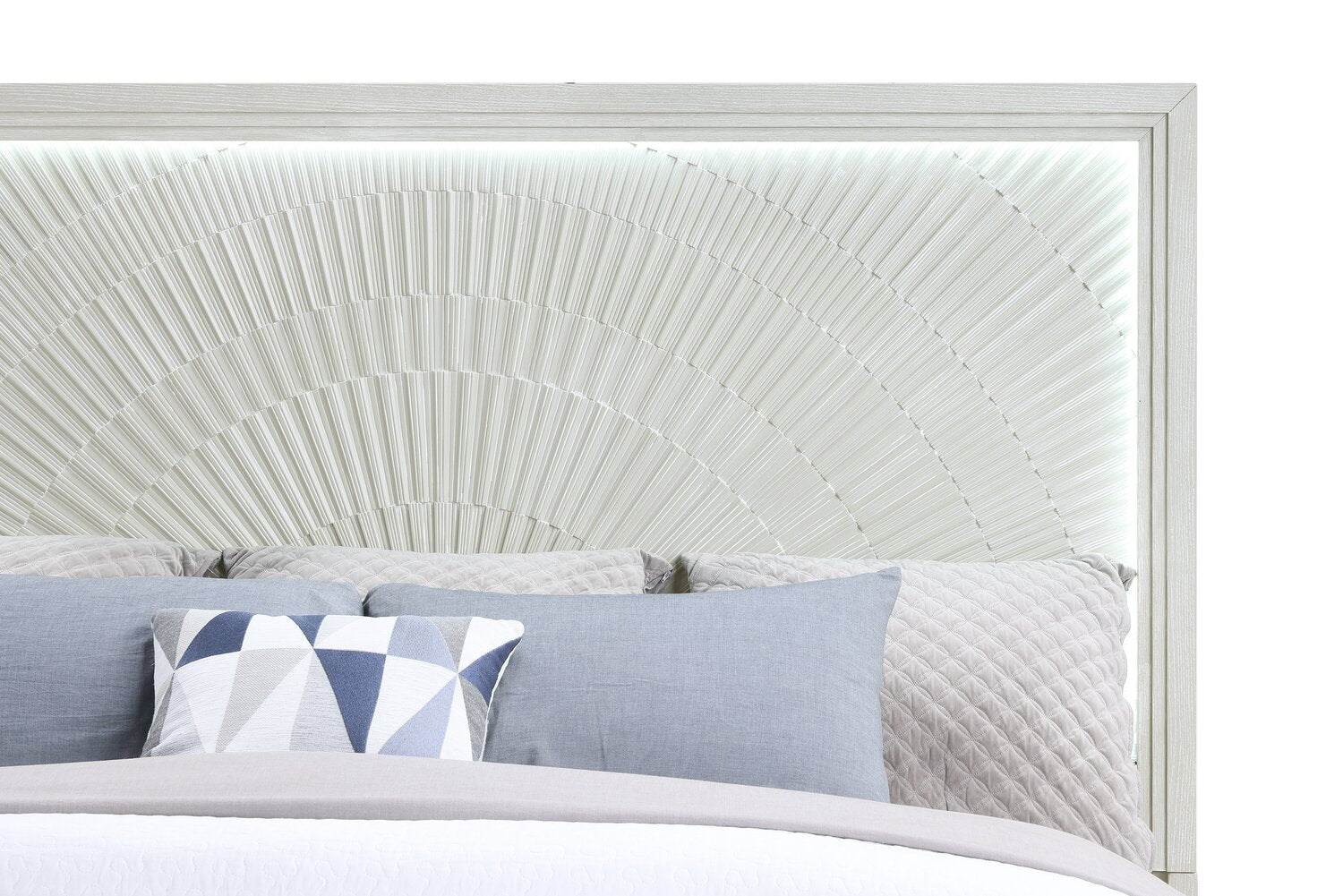 | Détails décoratifs | Les détails géométriques en relief sur la tête de lit ajoutent de la dimension et de l’intérêt. |