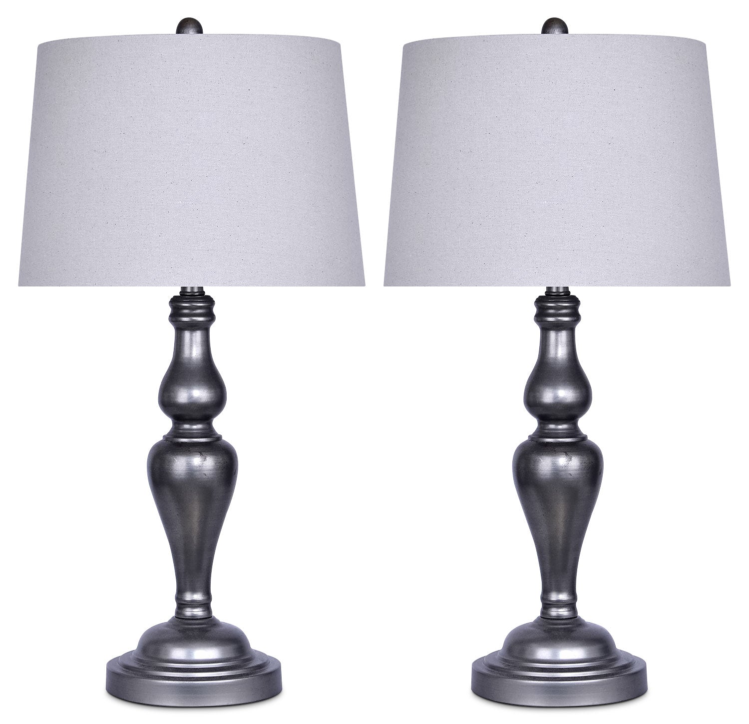 - Les abat-jours en lin blanc offrent un superbe contraste avec les bases plus foncées pour une allure saisissante.