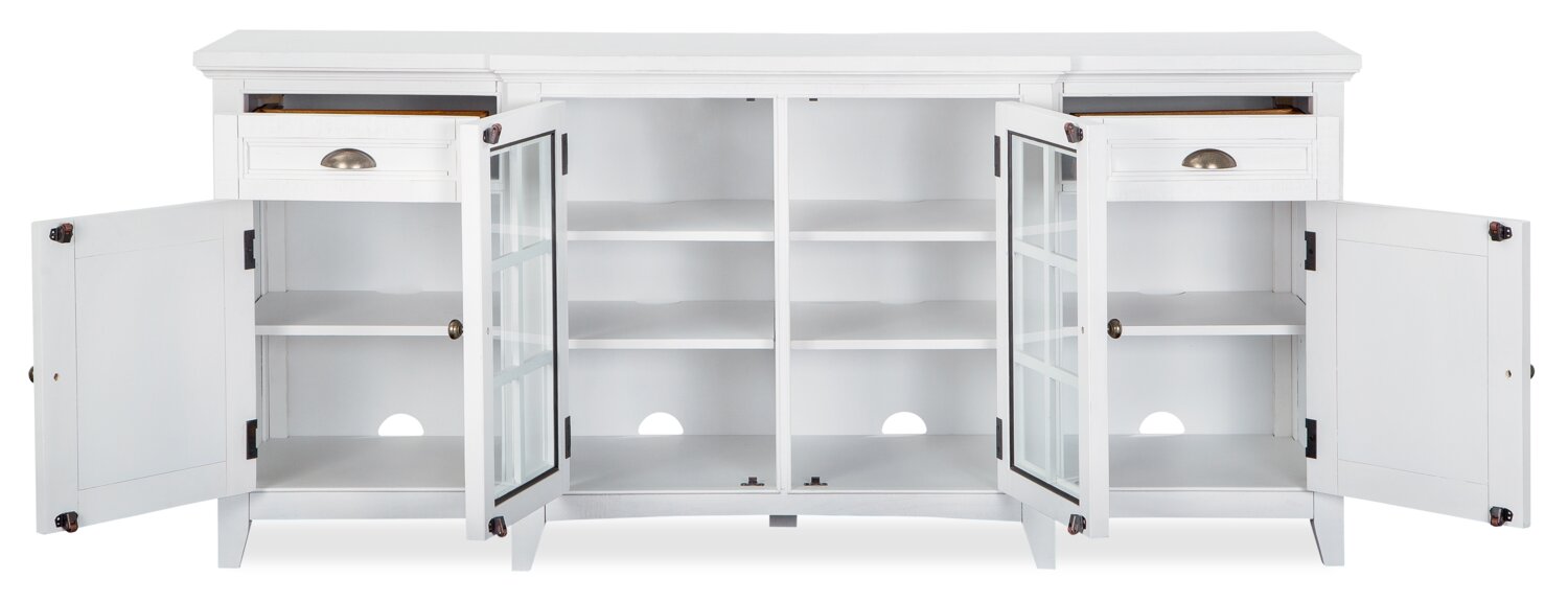 | Détails décoratifs | Les portes d’armoire en verre encadré de bois rehaussent le style traditionnel de ce meuble. |