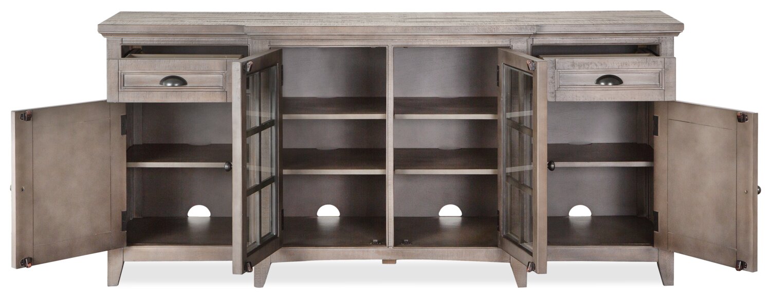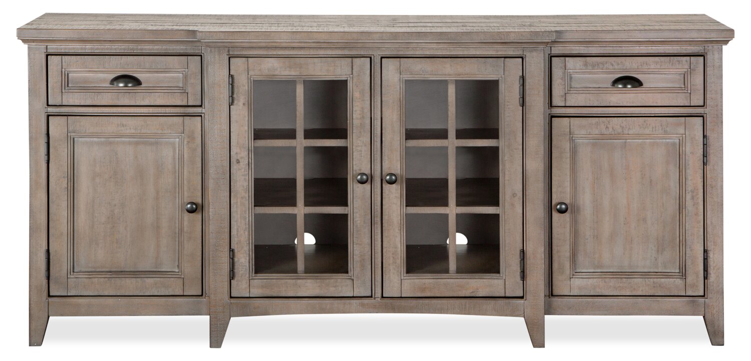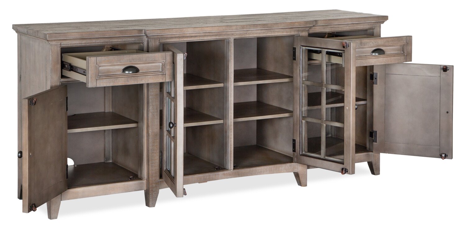 | Détails décoratifs | Les portes d’armoire en verre encadré de bois rehaussent le style traditionnel de ce meuble. |