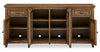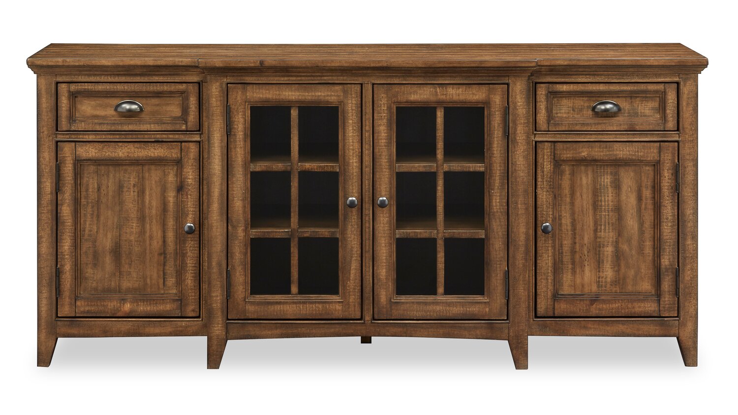| Détails décoratifs | Les portes d’armoire en verre encadré de bois rehaussent le style traditionnel de ce meuble. |
