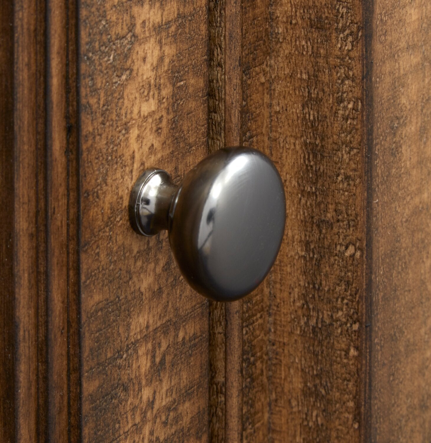 | Quincaillerie | Poignées en forme de coupelle et boutons d’armoires de couleur bronze vieilli. |