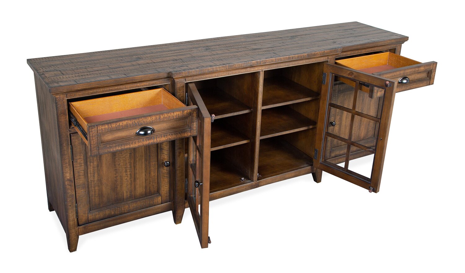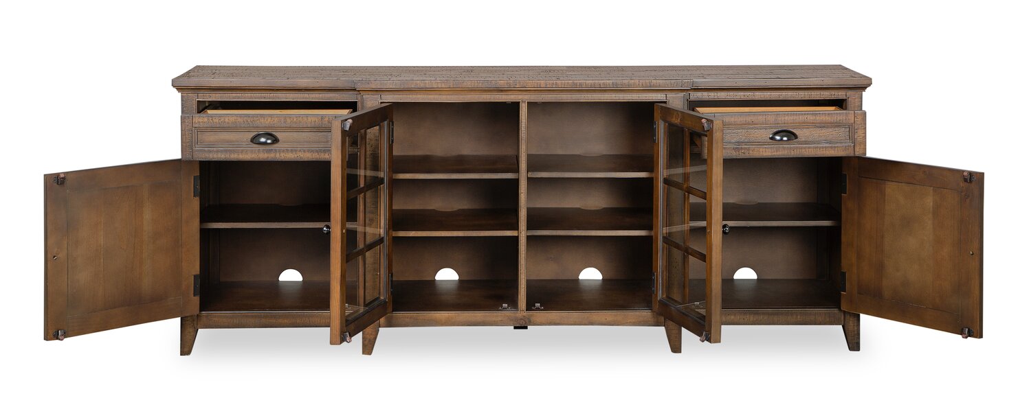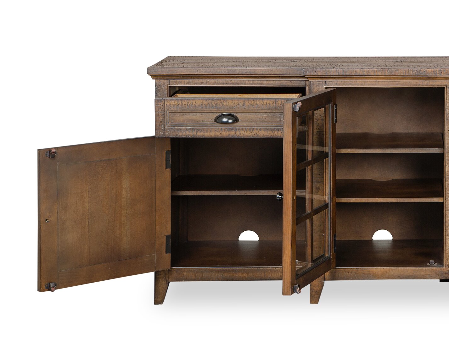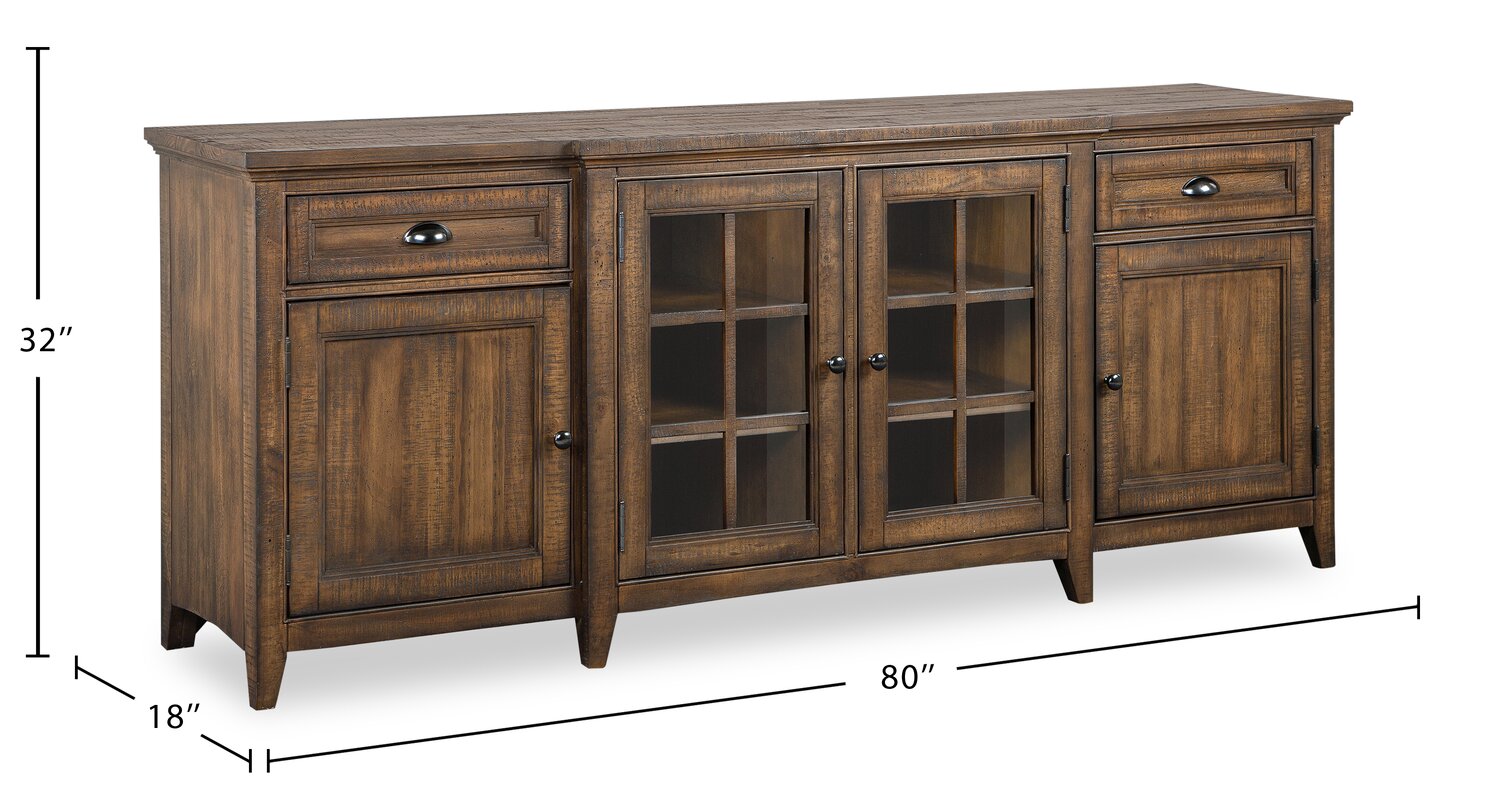 | Détails décoratifs | Les portes d’armoire en verre encadré de bois rehaussent le style traditionnel de ce meuble. |