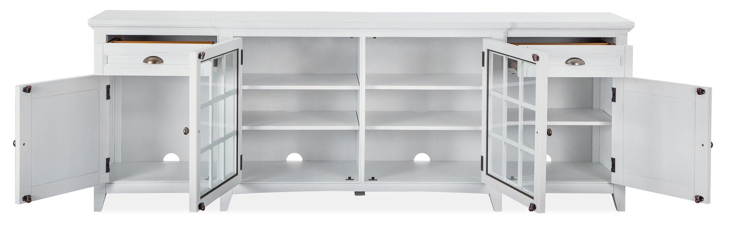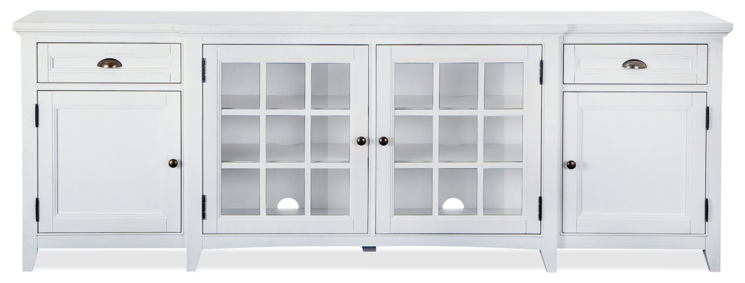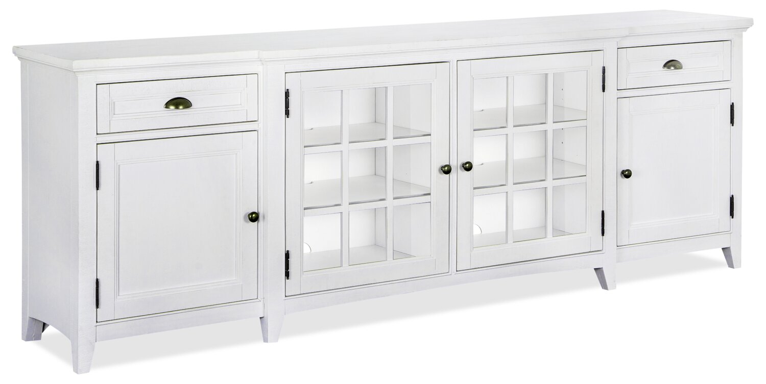 | Détails décoratifs | Les portes d’armoire en verre encadré de bois rehaussent le style traditionnel de ce meuble. |