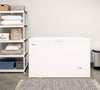 Congélateur convertible en réfrigérateur : Organisation polyvalente à 3 niveaux : Paniers modulaires : Coins faciles à nettoyer : Deux roulettes : Couvercle avec contrepoids : Système d'évacuation intégré : Appareil écoénergétique : |