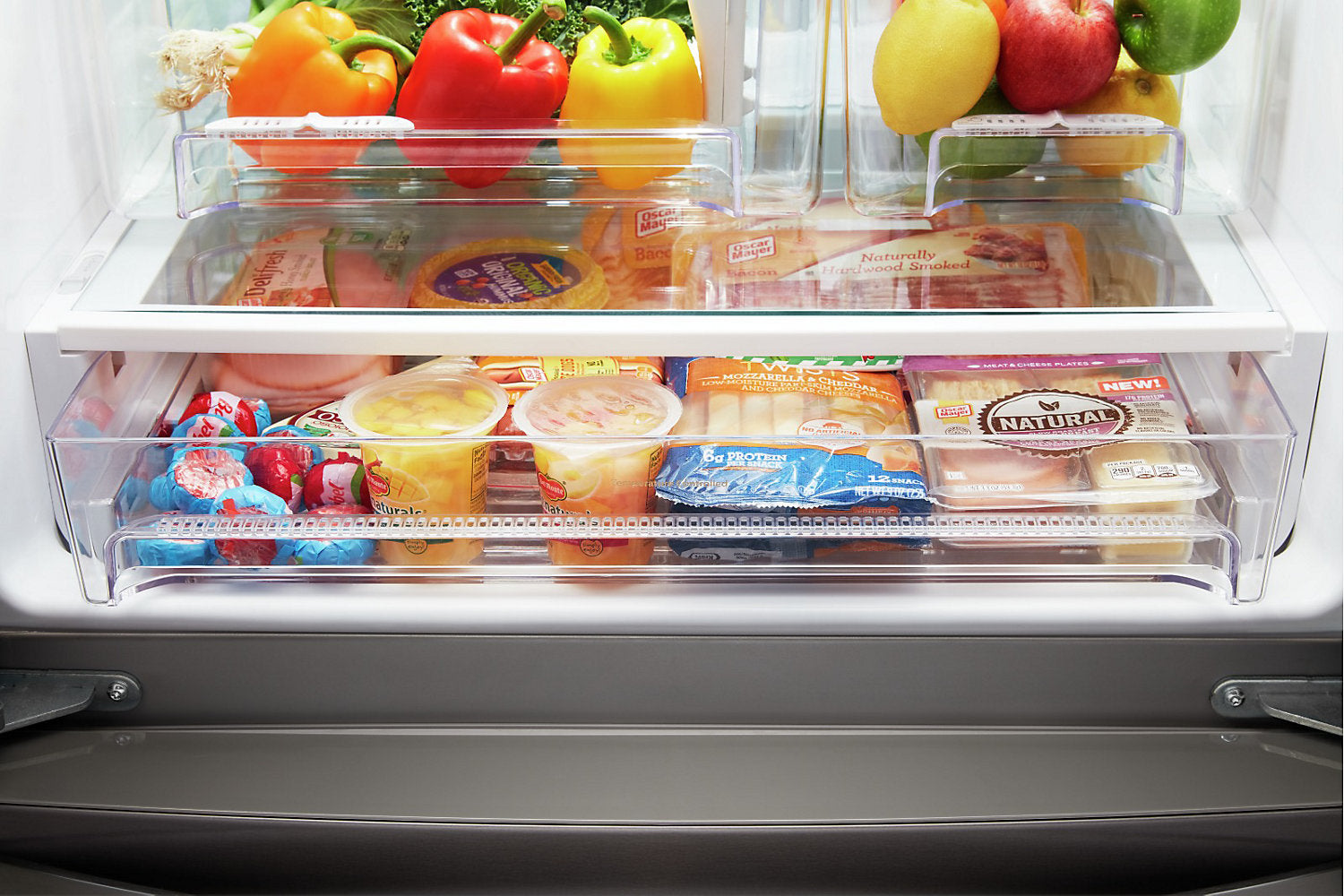 Bacs à légumes à humidité contrôlée : Bacs de porte réglables pour contenants de grand format : Tablette rétractable : Dispositif de conservation des fruits et légumes FreshFlowMC : Tablettes antidéversement en verre : Éclairage intérieur à DEL : Fini résistant aux traces de doigts : Largeur compacte de 30 po : Distributeur d'eau externe avec système de filtration EveryDropMC : Tiroir garde-manger pleine largeur : Plateau à condiments : Système de dégivrage adaptatif : Machine à glaçons installée en usine : Filtre à air FreshFlowMC : Option de refroidissement rapide : |