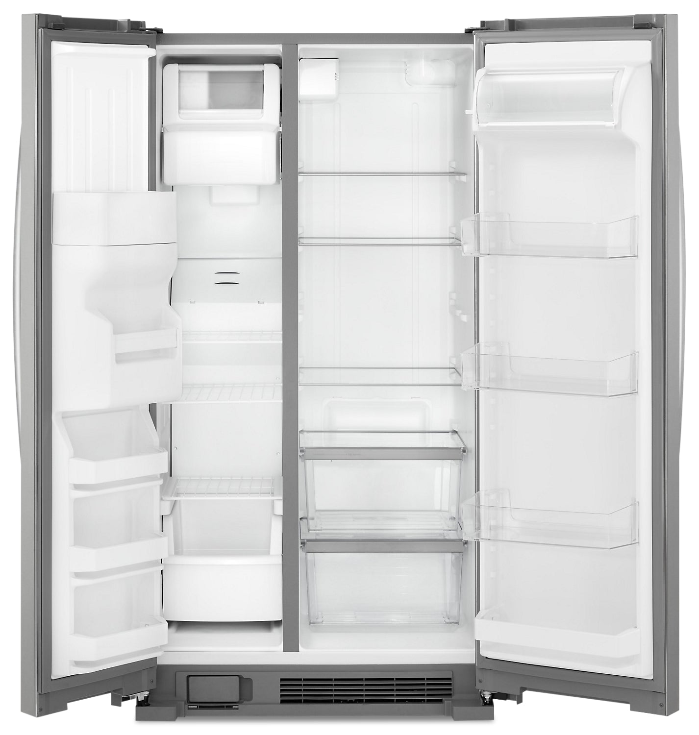 Tablettes en verre sans bordure : Bacs de porte réglables pour contenants de grand format : Éclairage intérieur à DEL : Appareil homologué ENERGY STARMD : Distributeur d'eau et de glaçons externe avec système de filtration EveryDropMC : Commandes tactiles : Charnières dissimulées : Commandes de température électroniques : Machine à glaçons installée en usine : Système de dégivrage adaptatif : Veilleuse du distributeur à DEL : Bacs à légumes à humidité contrôlée : |