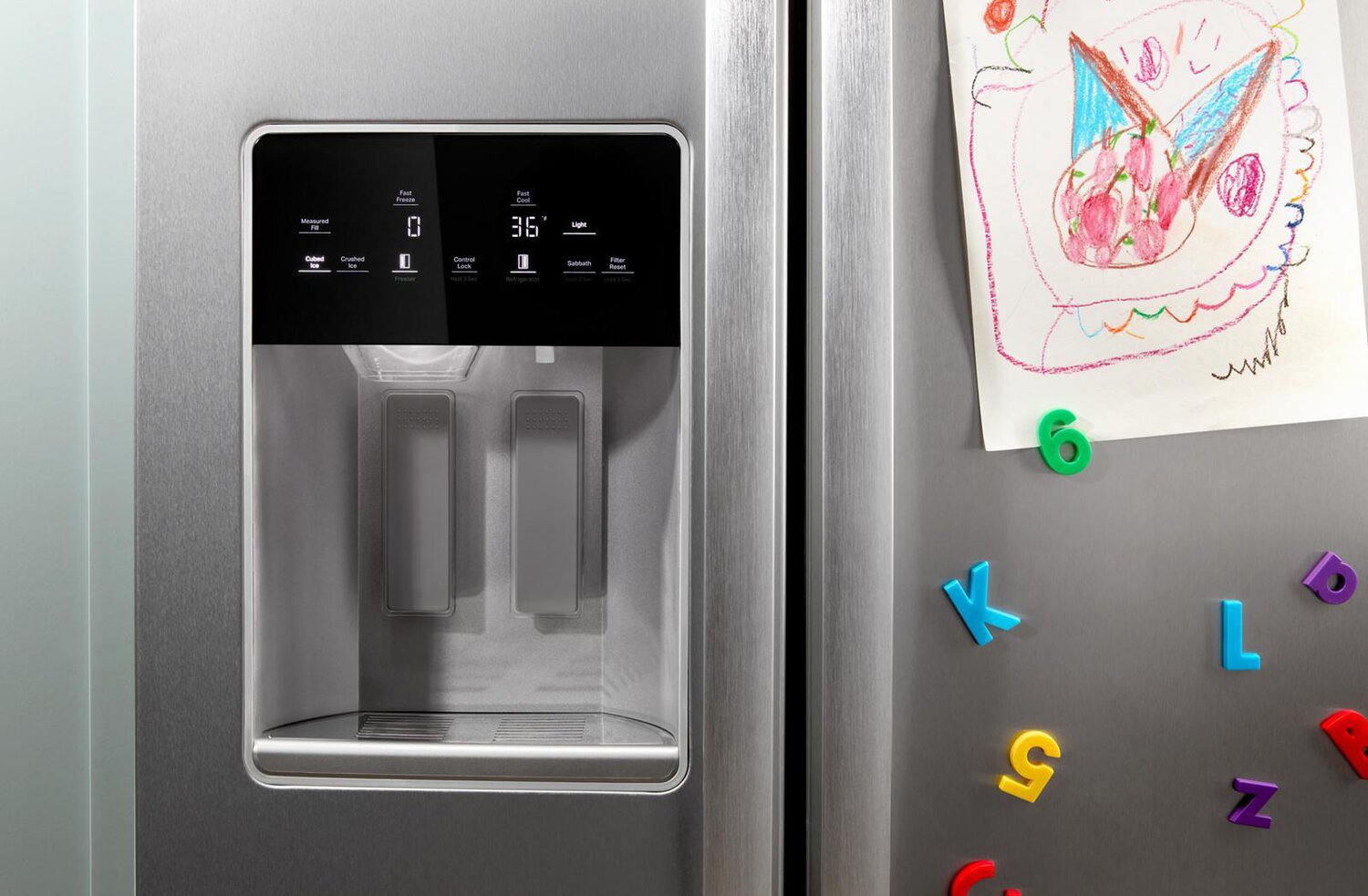| Caractéristiques de l'électroménager | Résistant aux traces de doigts, Exterior Ice/Water Dispenser, Machine à glaçons, Verrouillage à l'épreuve des enfants |