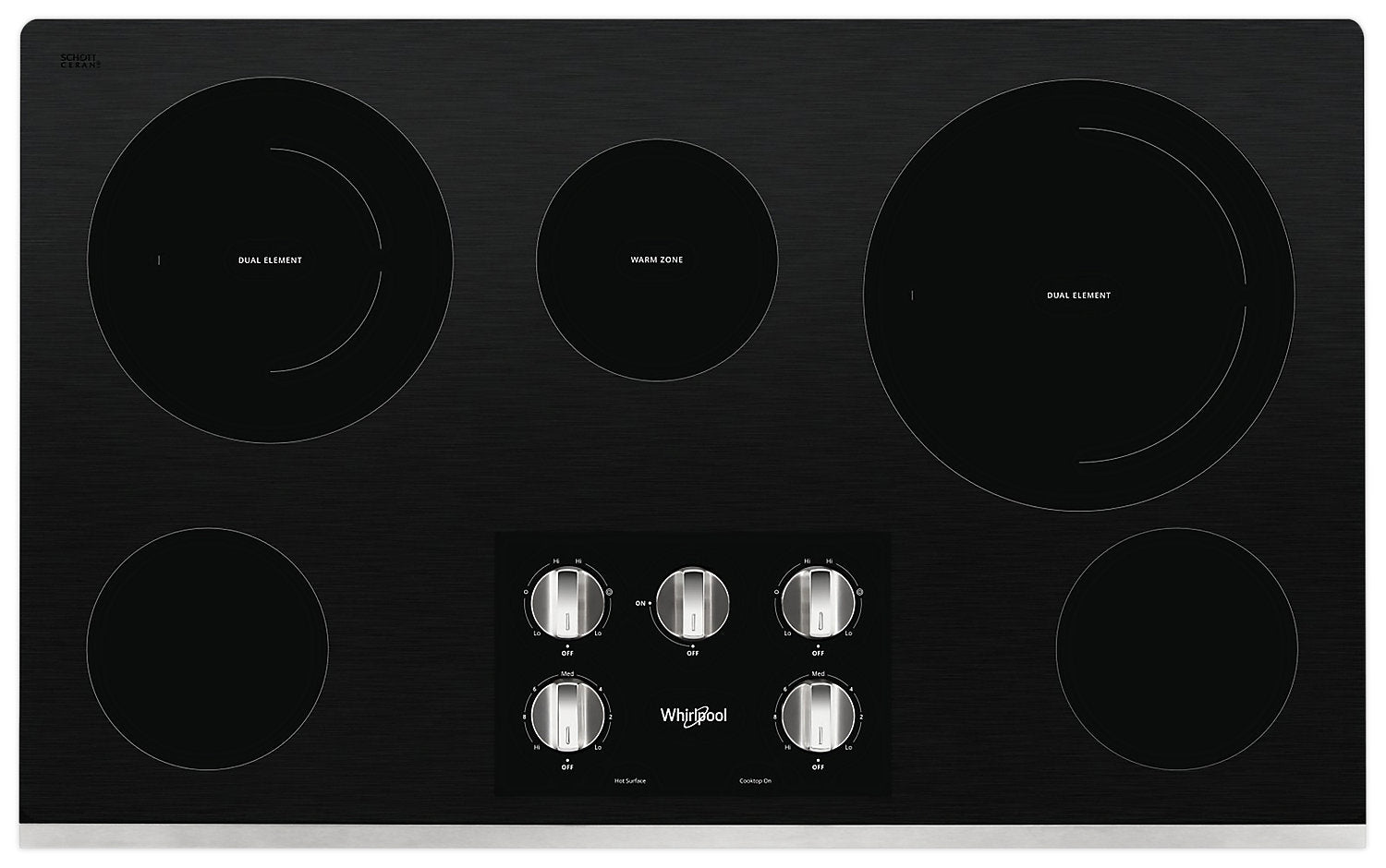 Élément radiant double FlexHeatMC : Surface de cuisson en vitrocéramique facile à essuyer : Élément de zone de réchaud : Surface de cuisson à cinq éléments : Boutons lavables au lave-vaisselle : Voyant de surface chaude : Compatibilité avec four mural : |