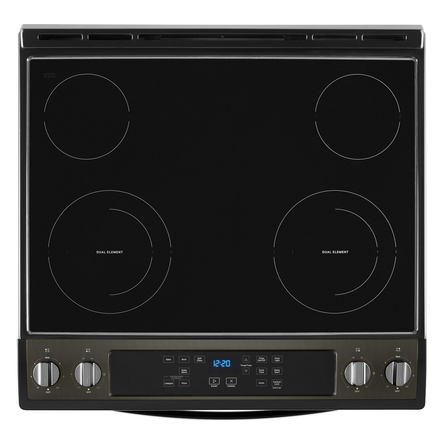 Capacité de 4,8 pi3 : Technologie Frozen BakeMC : Élément radiant double FlexHeatMC : Réglage garde-au-chaud : Technologie d'autonettoyage réglable : Surface de cuisson en vitrocéramique : |