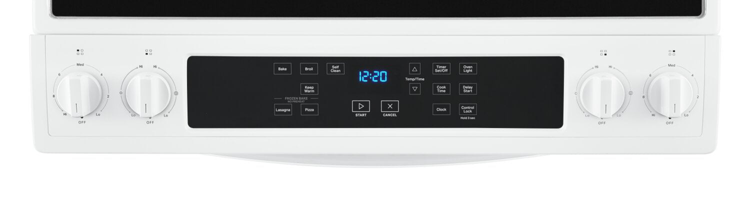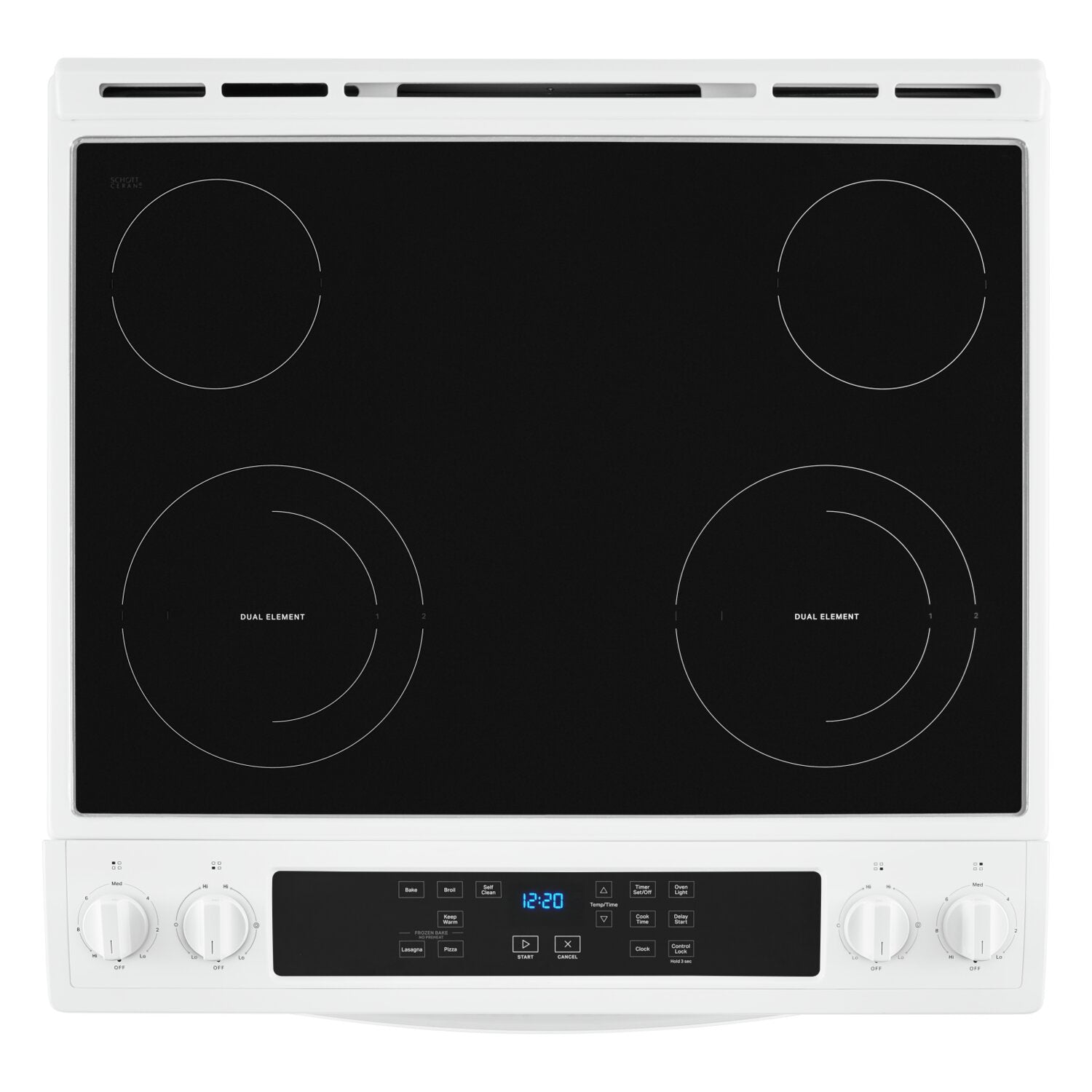 Capacité de 4,8 pi3 : Technologie Frozen BakeMC : Élément radiant double FlexHeatMC : Réglage garde-au-chaud : Technologie d'autonettoyage réglable : Surface de cuisson en vitrocéramique : |