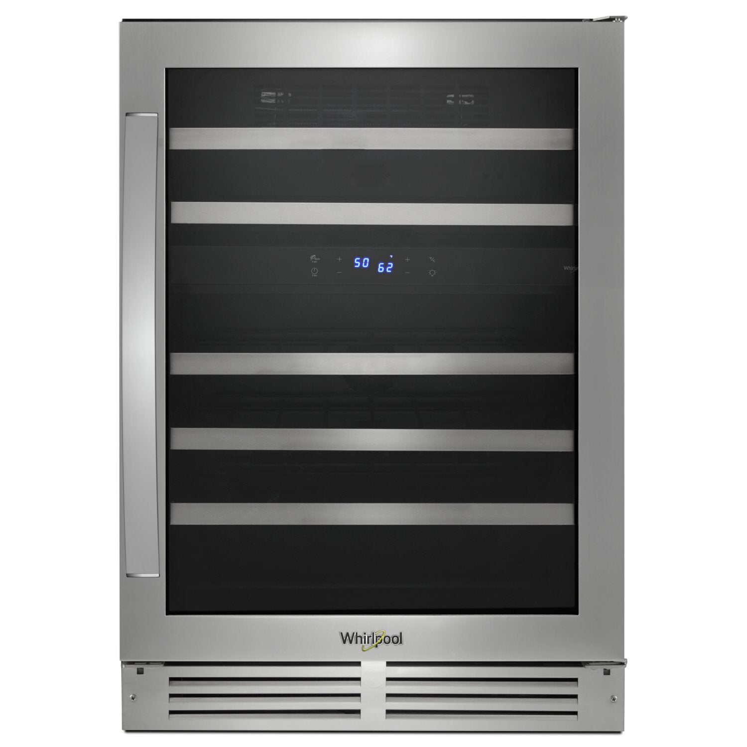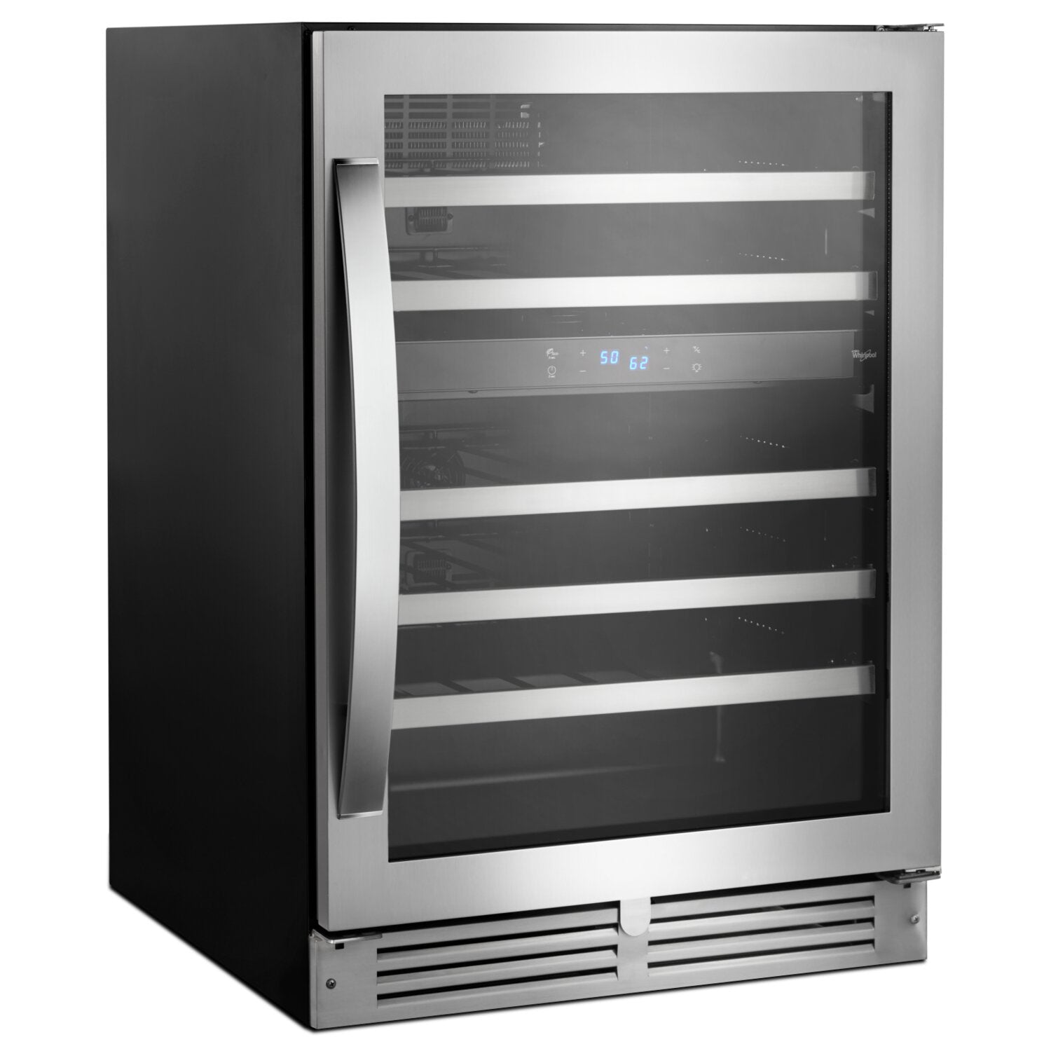 Capacité de 46 bouteilles : Deux zones de température régulée : Grilles avant en métal : Éclairage intérieur à DEL : Porte réversible en verre : Capteur de température avec alerte : Commandes de température électroniques : Acier inoxydable résistant aux traces de doigts : |