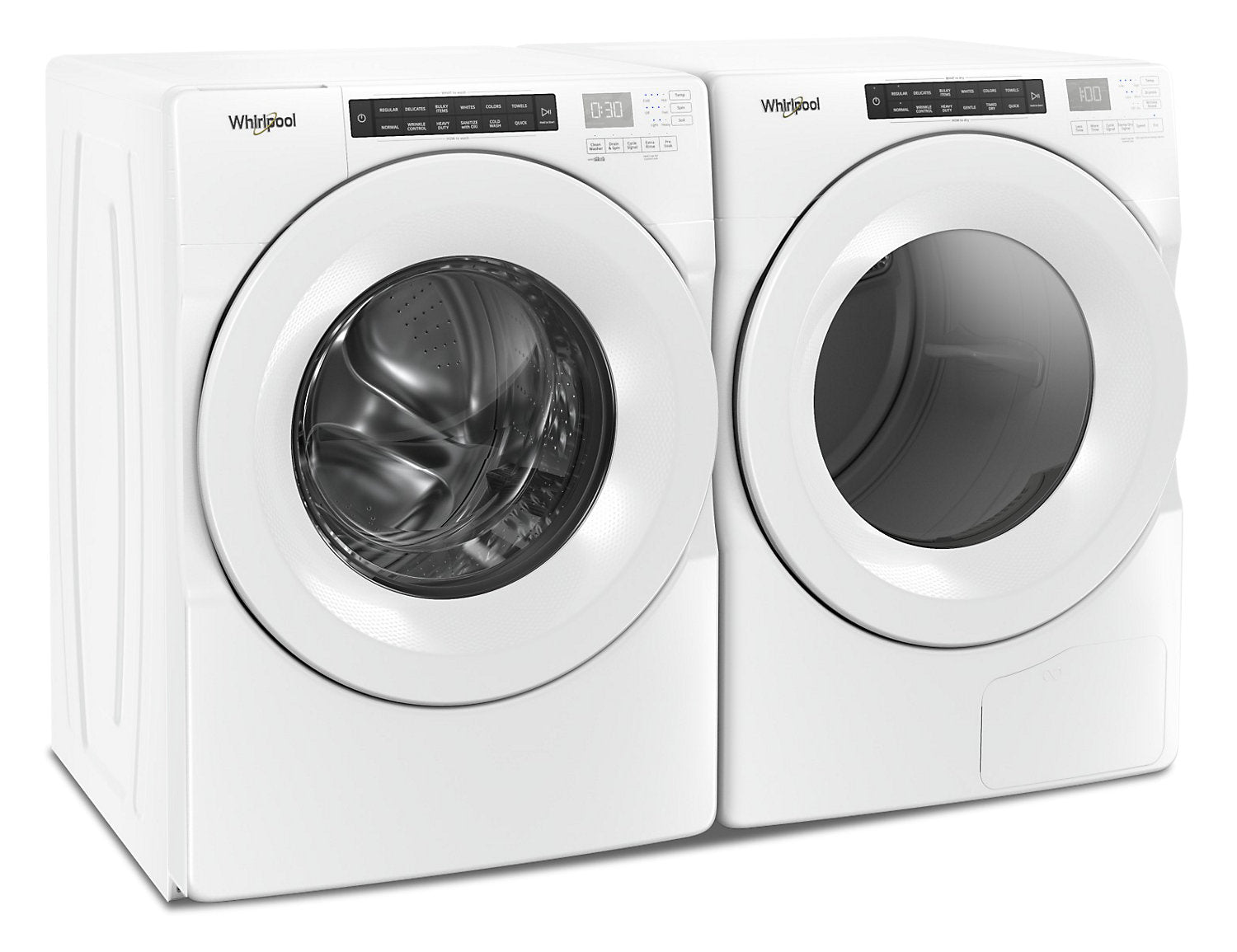 Conception de profondeur placard : Commandes intuitives : Appareil homologué ENERGY STARMD : Cycle de désinfection avec Oxi : Cycle de lavage rapide : Cycle de lavage à l'eau froide : Option de prétrempage : Distributeur de chargement unique : Panier de lavage en acier inoxydable Smooth Wave : Cycle de nettoyage de la laveuse avec AffreshMD :