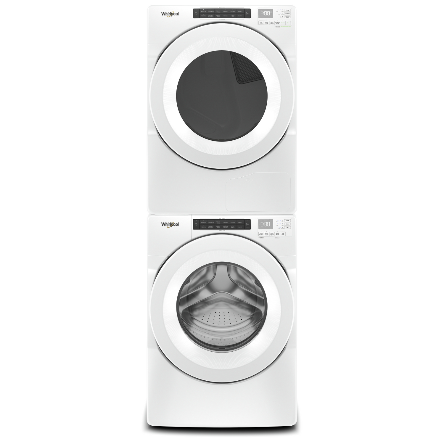 Laveuse à chargement frontal 5,0 pi³ et sécheuse à chargement frontal 7,4 pi³ de Whirlpool - blanches