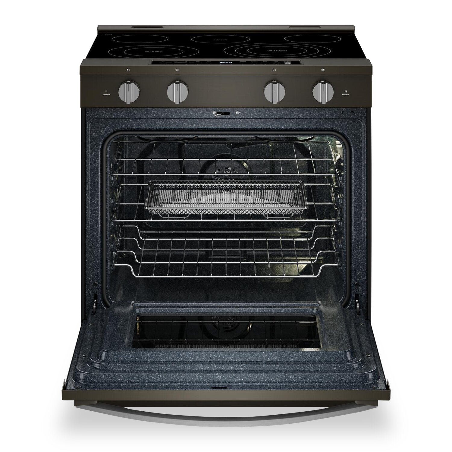 Friture à air sans préchauffage : Cuisson à air : Rôtissage à air : Grillage à air : Revêtement WipeCleanMC : Zone de plaque chauffante : Préchauffage à grande vitesse : Compatibilités intelligentes : |