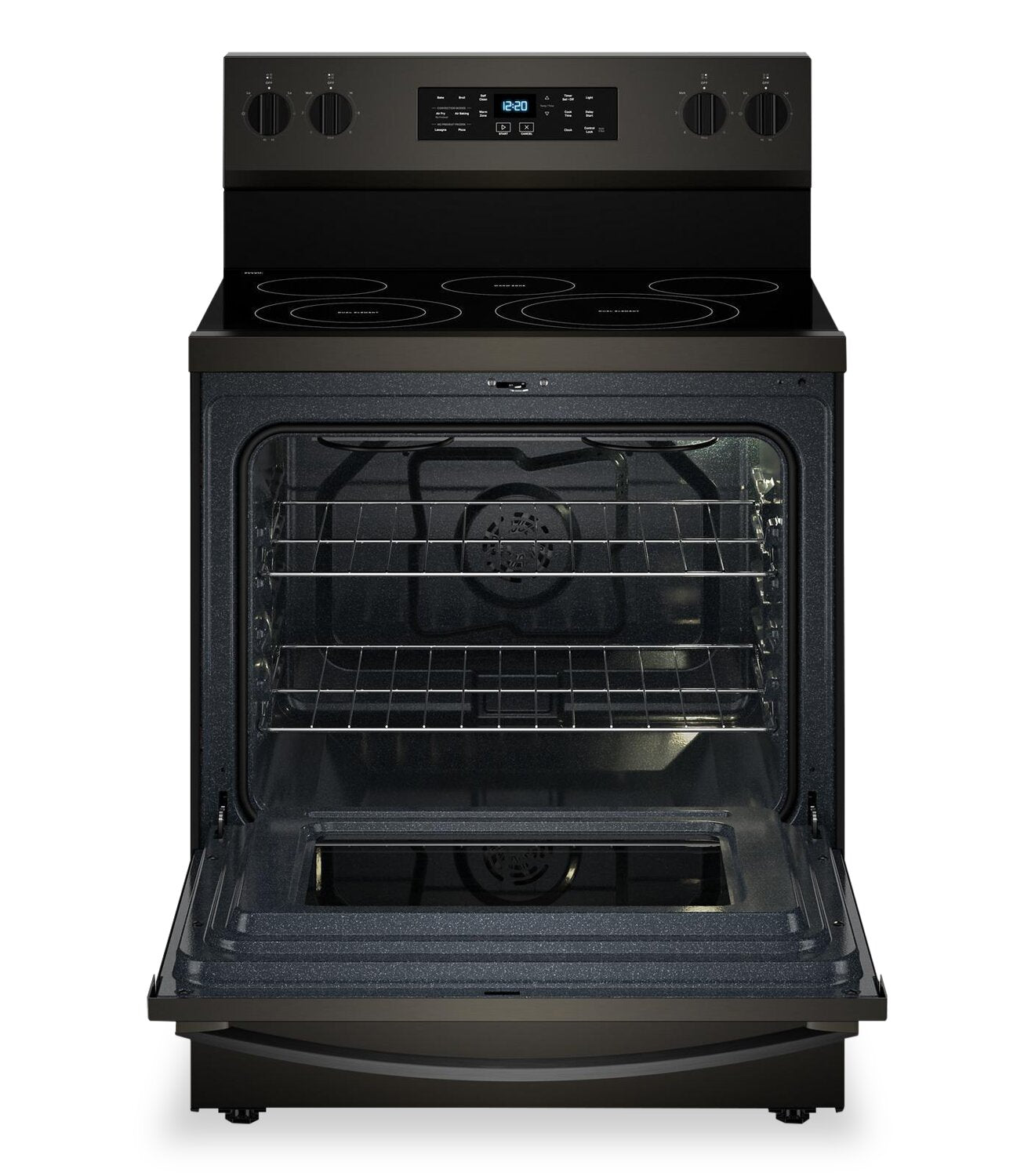 Friture à air sans préchauffage : Cuisson à air : Éléments radiants doubles FlexHeatMC : Autonettoyage : Mode sans préchauffage : Zone de réchaud : |