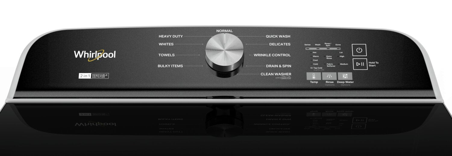 Agitateur amovible 2 en 1 : Option de lavage à niveau d'eau élevé : Couvercle en verre à fermeture lente pleine largeur EasyViewMC : Panier de lavage lisse en acier inoxydable à alvéoles spiralées : Option de turbine lisse : Lavage rapide : Appareil homologué ENERGY STARMD : |