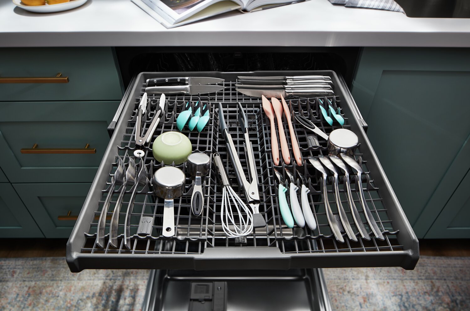 Troisième panier : Deuxième panier réglable : Technologie de séchage par ventilation : Système de nettoyage à filtration triple : Tiges repliables : Rinçage Sani RinseMC : Cycles de trempage prolongé : |
