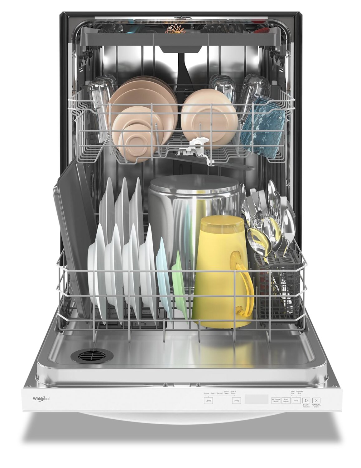 Grâce à un éventail d’options de chargement polyvalentes, vous pouvez en charger plus et courir moins souvent par le biais de ce lave-vaisselle à commandes sur le dessus de Whirlpool. Nettoyez les articles qui sont normalement difficiles à placer, comme les spatules et les tasses à mesurer, dans le troisième panier pour libérer plus d’espace en dessous pour le reste de la vaisselle. Grâce au deuxième panier réglable, charger de grosses casseroles, des poêles et des bols à mélanger devient une réalité. Ne vous embêtez pas avec les paramètres de nettoyage. En effet, le cycle par capteur adapte automatiquement les températures et les durées de cycle en se basant sur le niveau de saleté de chaque chargement pour le meilleur nettoyage chaque fois.