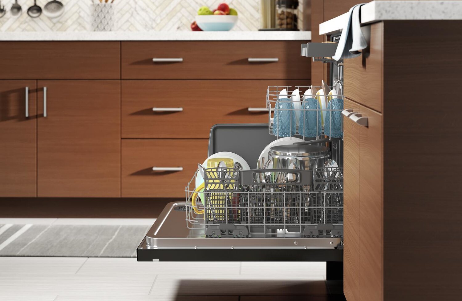 Grâce à un éventail d’options de chargement polyvalentes, vous pouvez en charger plus et courir moins souvent par le biais de ce lave-vaisselle à commandes sur le dessus de Whirlpool. Nettoyez les articles qui sont normalement difficiles à placer, comme les spatules et les tasses à mesurer, dans le troisième panier pour libérer plus d’espace en dessous pour le reste de la vaisselle. Grâce au deuxième panier réglable, charger de grosses casseroles, des poêles et des bols à mélanger devient une réalité. Ne vous embêtez pas avec les paramètres de nettoyage. En effet, le cycle par capteur adapte automatiquement les températures et les durées de cycle en se basant sur le niveau de saleté de chaque chargement pour le meilleur nettoyage chaque fois.