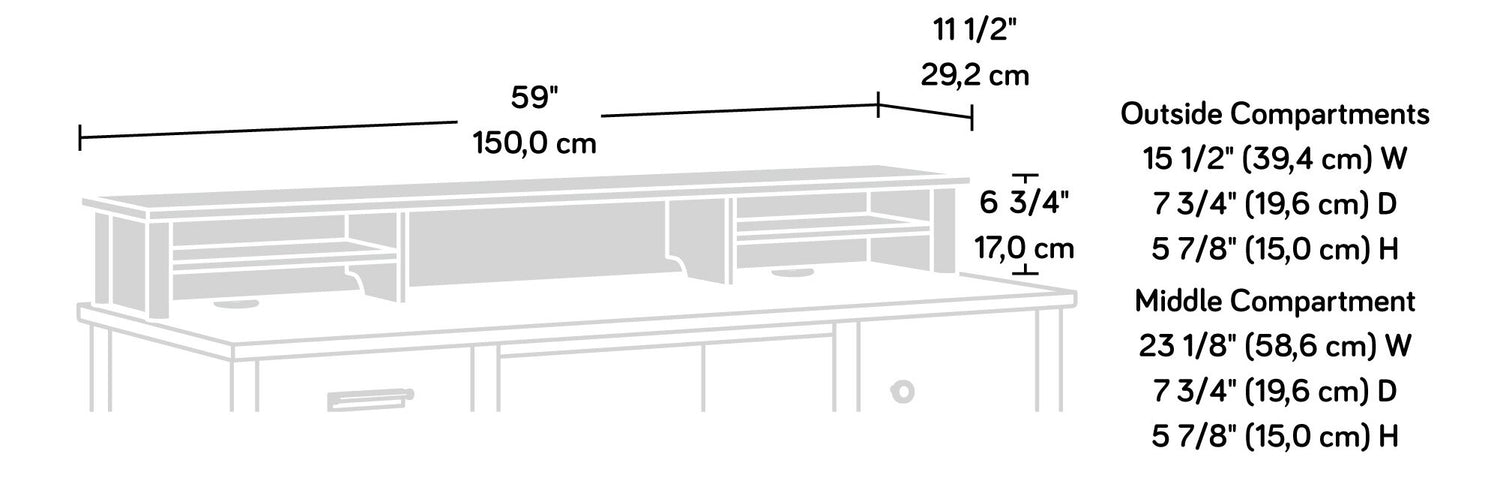Largeur : 59,06 po (150,0 cm) Hauteur : 6,69 po (17,0 cm) Profondeur : 11,50 po (29,2 cm)