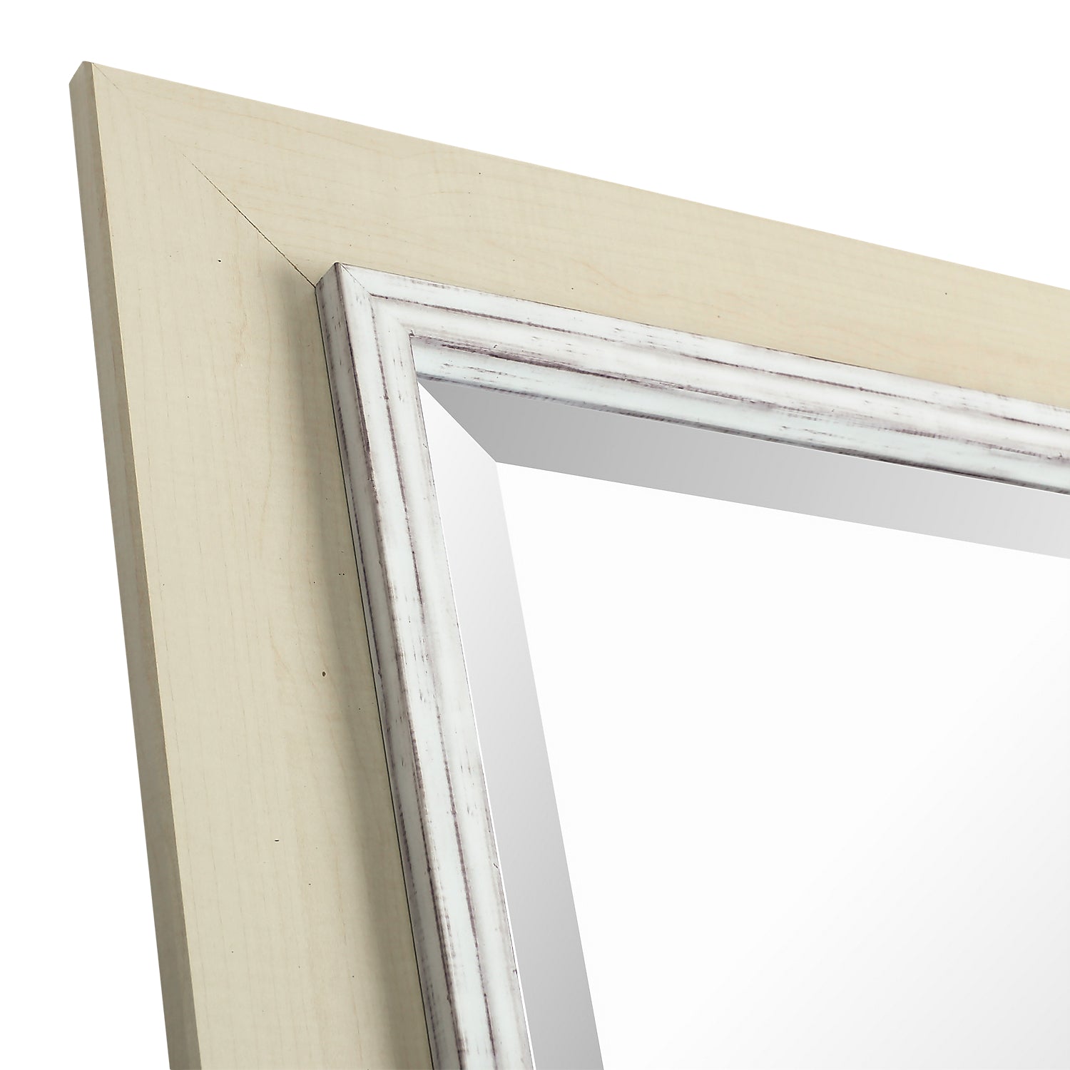 Muni d'une peinture blanc vieilli autour du verre et d'un cadre en bois simple, ce miroir blanc confère beaucoup de charme campagnard à votre pièce. Le verre biseauté ajoute de la texture pour une dimension plus dynamique. Placez ce miroir là où il a meilleure allure grâce aux crochets situés à l'arrière qui vous permettent de l'installer horizontalement ou verticalement. Fièrement fabriqué au Canada, ce miroir offre une touche de charme rustique à votre espace.