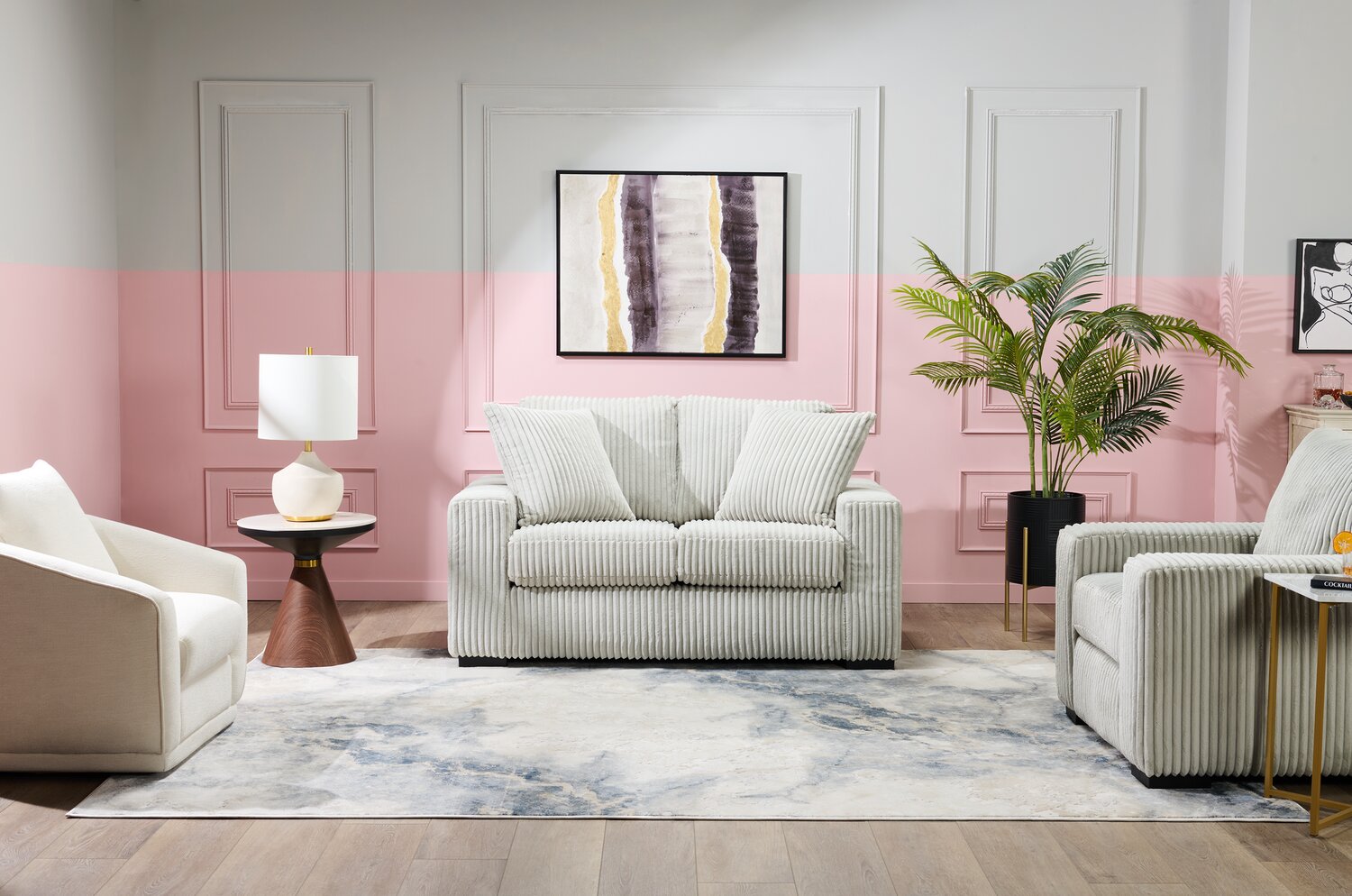| Détails décoratifs | Le tissu de velours à grosses côtes donne une apparence texturée unique à ce meuble. |