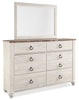 Miroir de commode de chambre à coucher Willowton, à fixer au meuble ou à suspendre au mur - blanchi