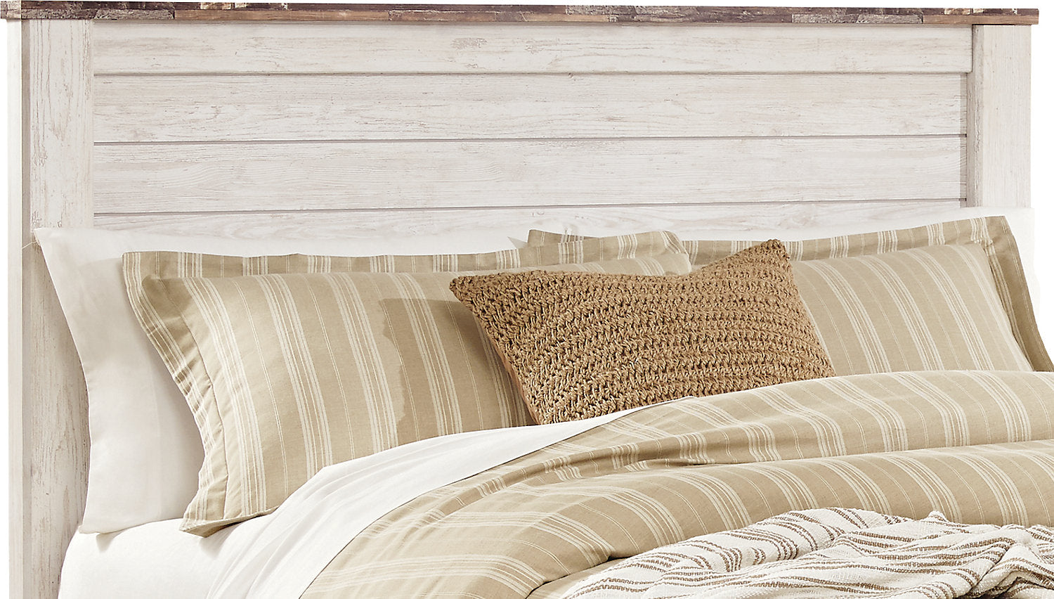 Lit à panneau Willowton avec tête de lit et cadre de lit, blanchi - format grand lit