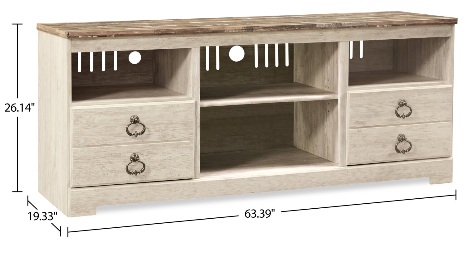 Largeur : 63,39 po (161,0 cm) Hauteur : 26,14 po (66,4 cm) Profondeur : 19,33 po (49,1 cm)