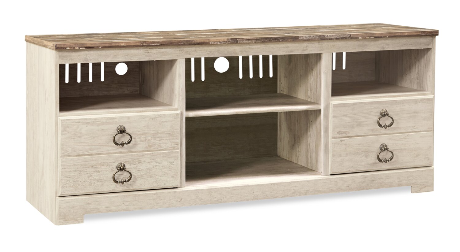 | Options de rangement | Quatre compartiments ouverts et deux tiroirs |